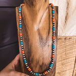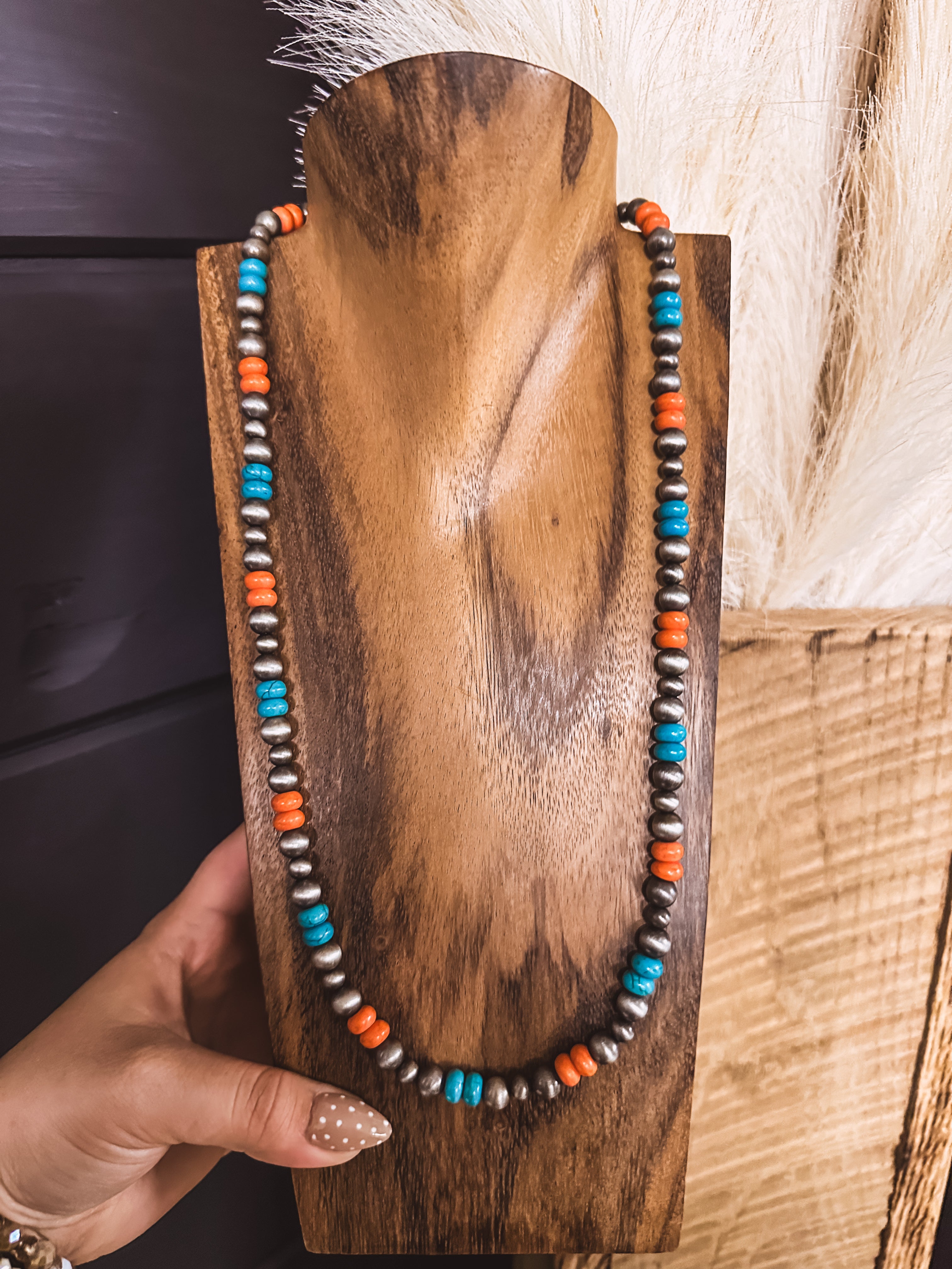 Faux Silver, Orange + Teal 26" Mix Necklace