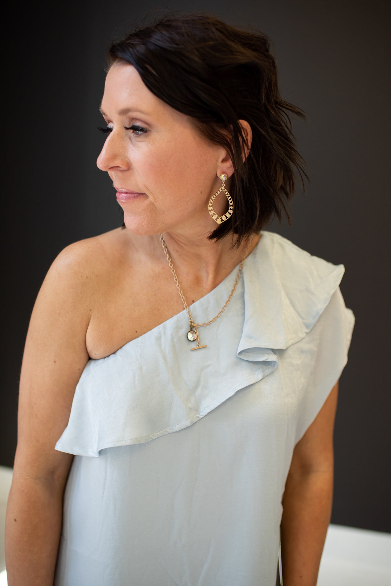 Gold Matte Tiny Chain with Toggle & Crystal Pendant