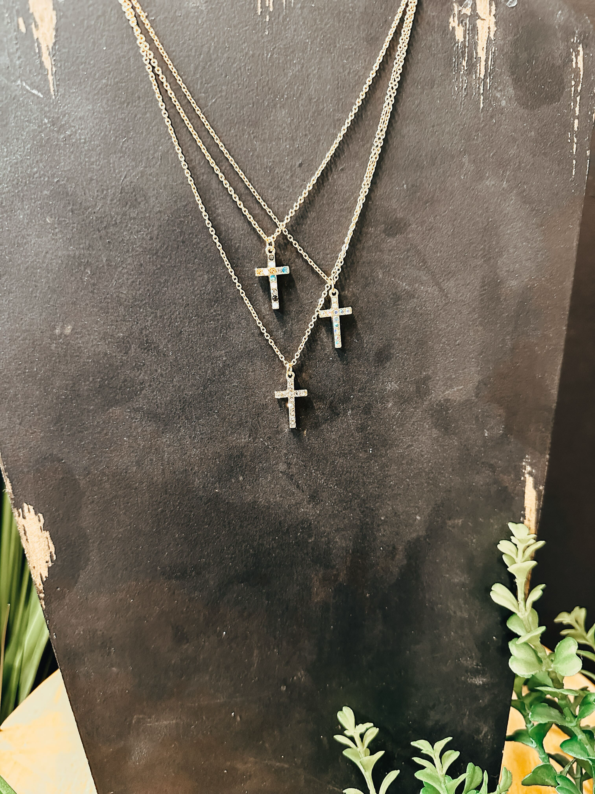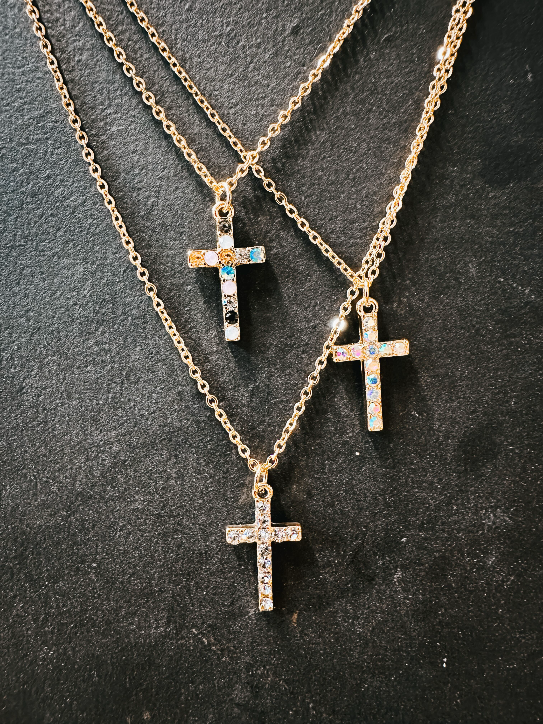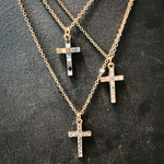 Gold Rhinestone Cross Pendant Necklace