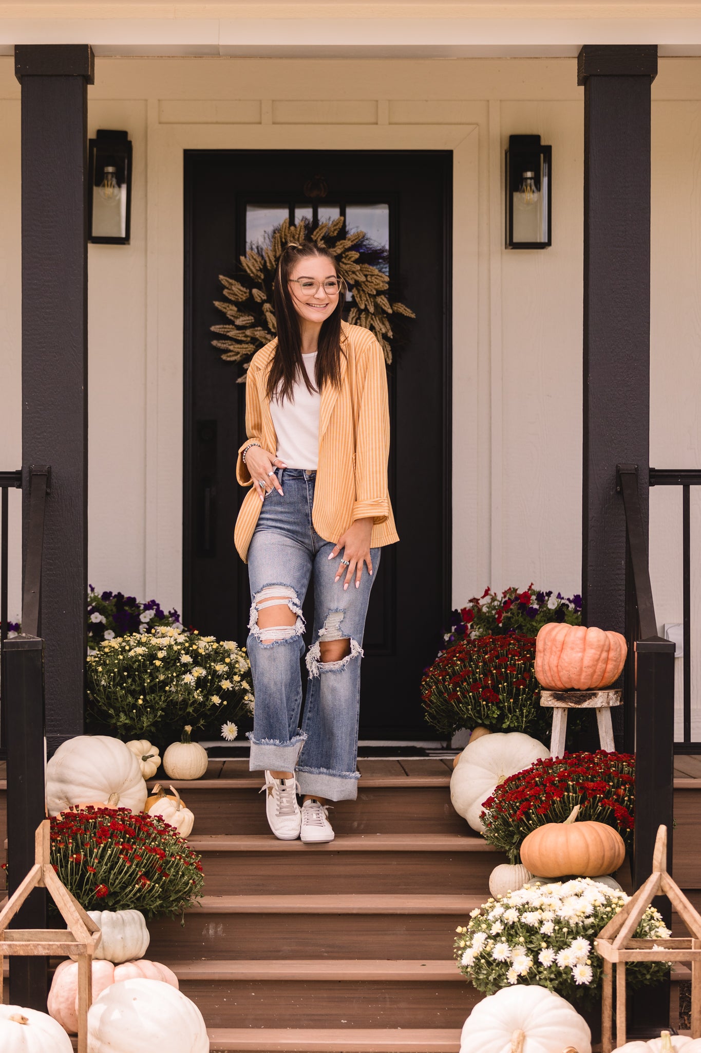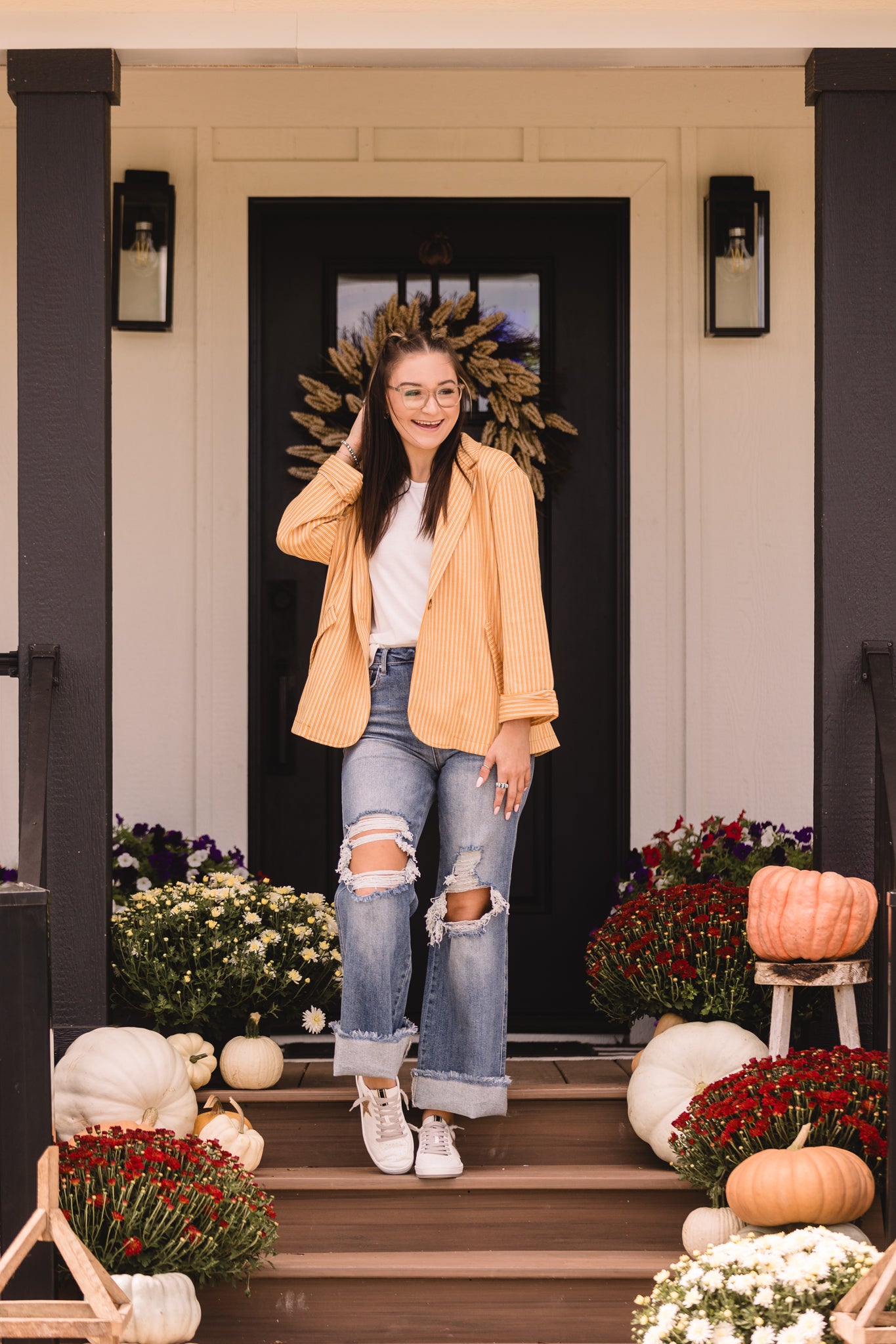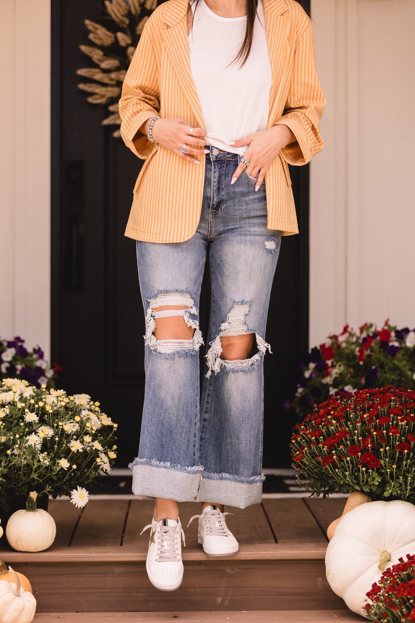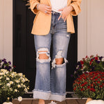 High Rise Medium Wash Distressed Wide Leg Dad Jeans