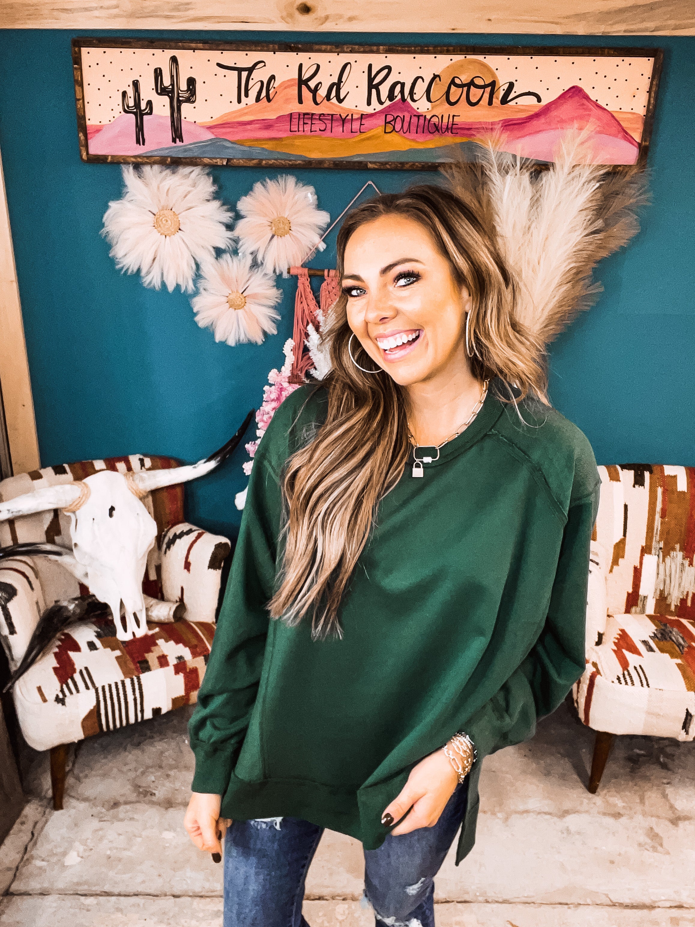 Hunter Green French Terry Oversize L/S Dolman