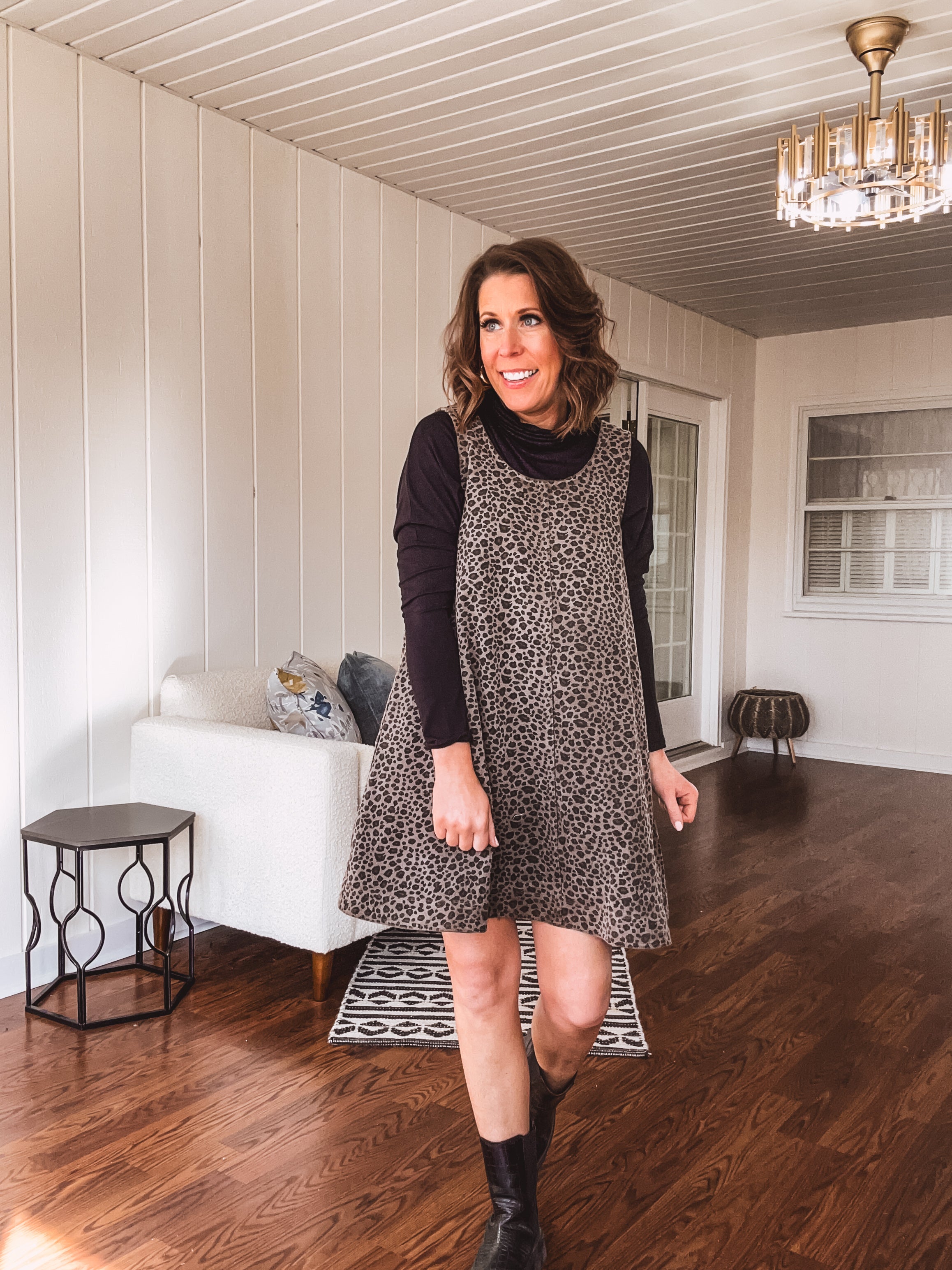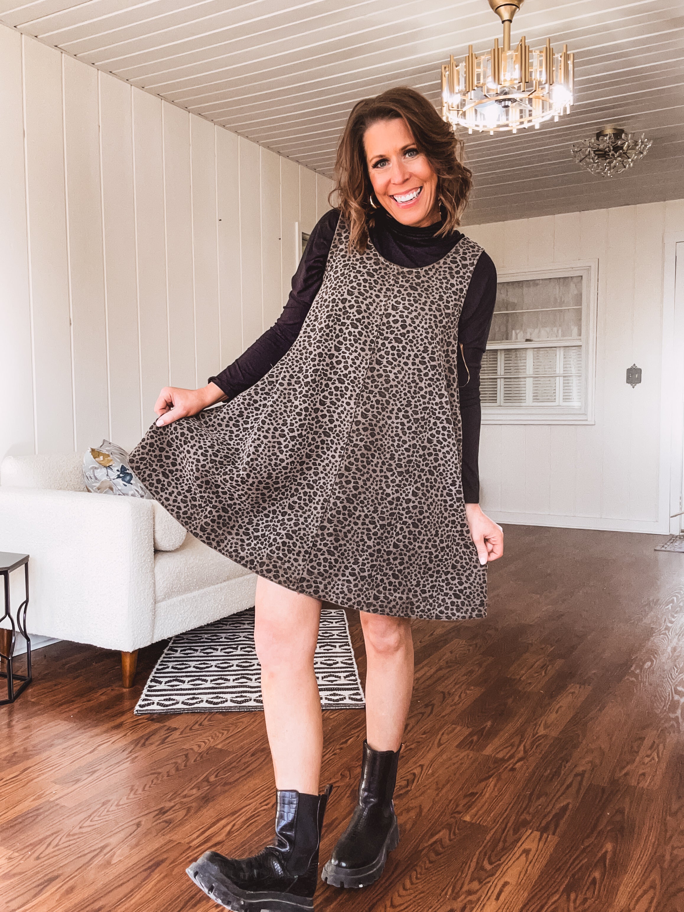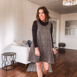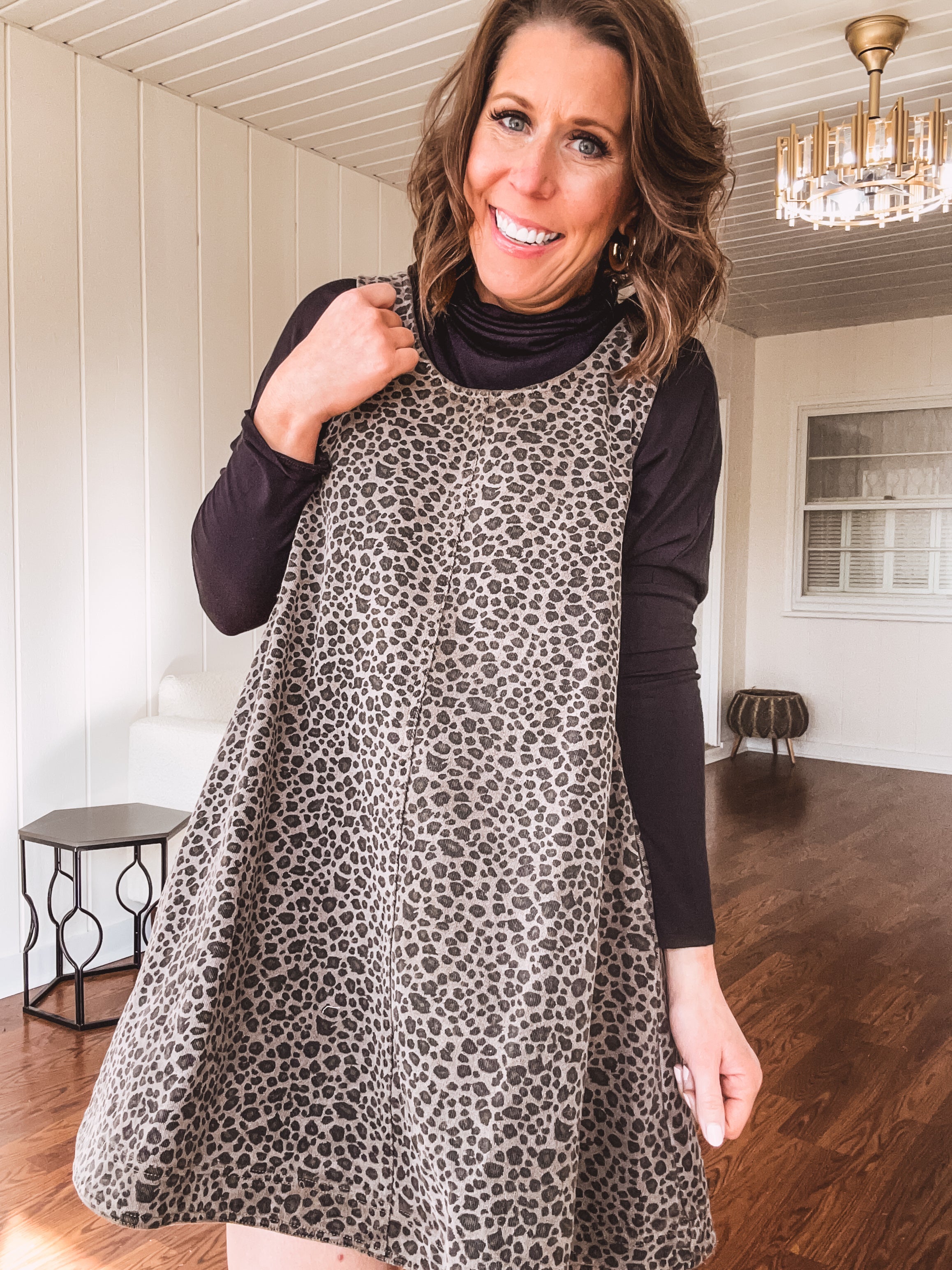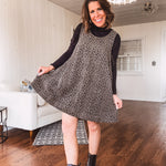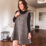 Rock a bold look with this denim-textured mini dress in a fierce leopard print. The double scoop neckline and back create an edgy vibe, while the A-line cut flatters every frame. Practical pockets keep your essentials close. Style it with leggings and booties for casual cool, or layer it over a turtleneck and tall boots for an unexpectedly chic ensemble. Short, sweet, and ready for whatever adventure comes your way.