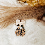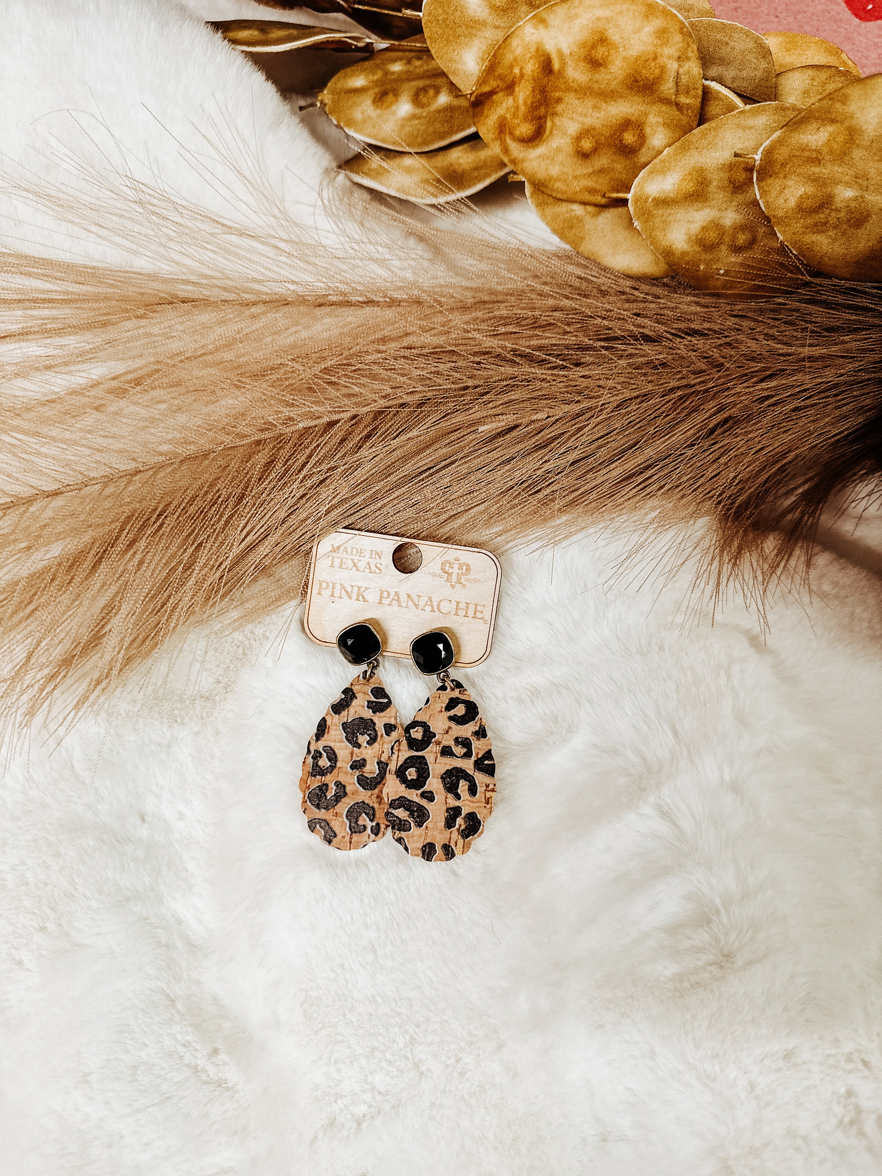 These cork earrings from a woman-owned Texas brand rock a timeless leo print, swinging from a sparkly black square bead on a post back. Feather-light and fun, they’re just the pop your outfit needs to stand out.
