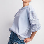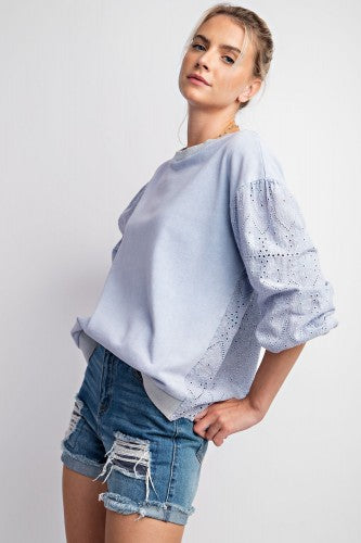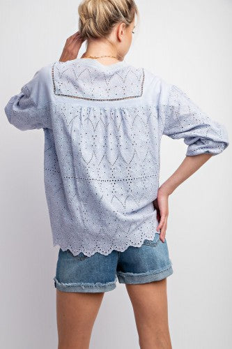 Light Periwinkle Eyelet Lace Back Long Sleeve
