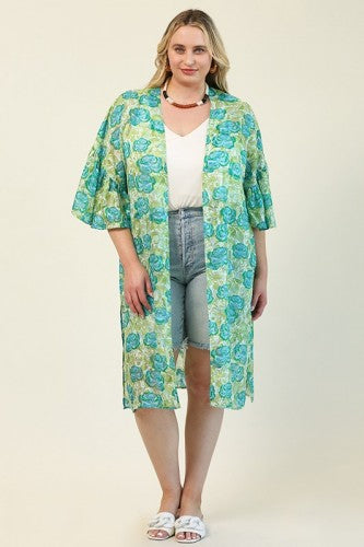 Lime + Blue Floral Jacquard Kimono