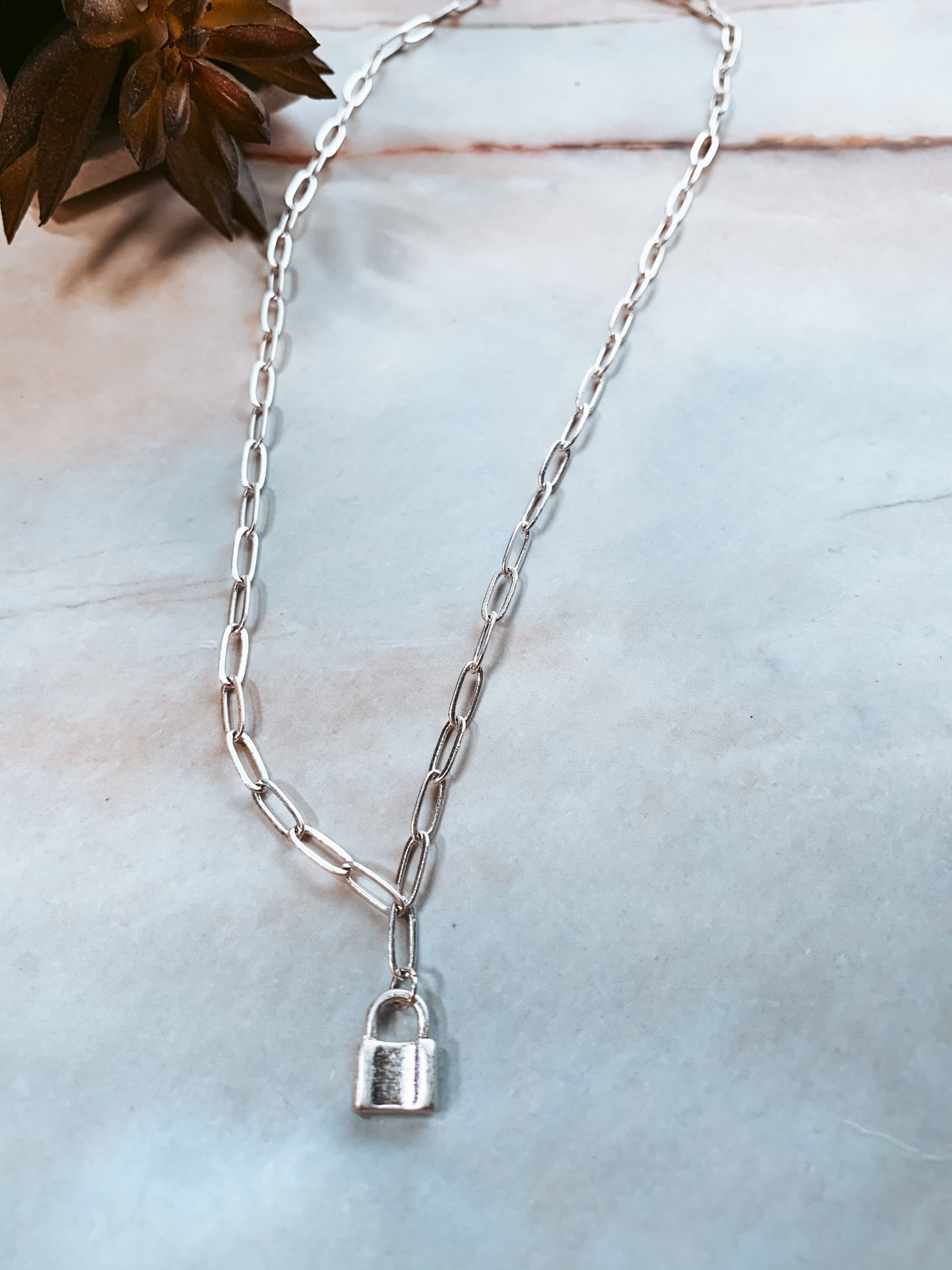 Matte Teeny Silver Lock Necklace