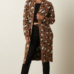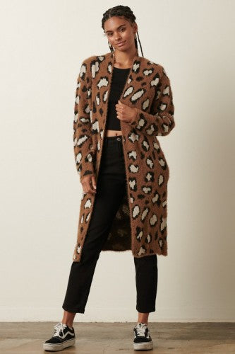 Mocha Animal Print Eyelash Knit Sweater Cardigan