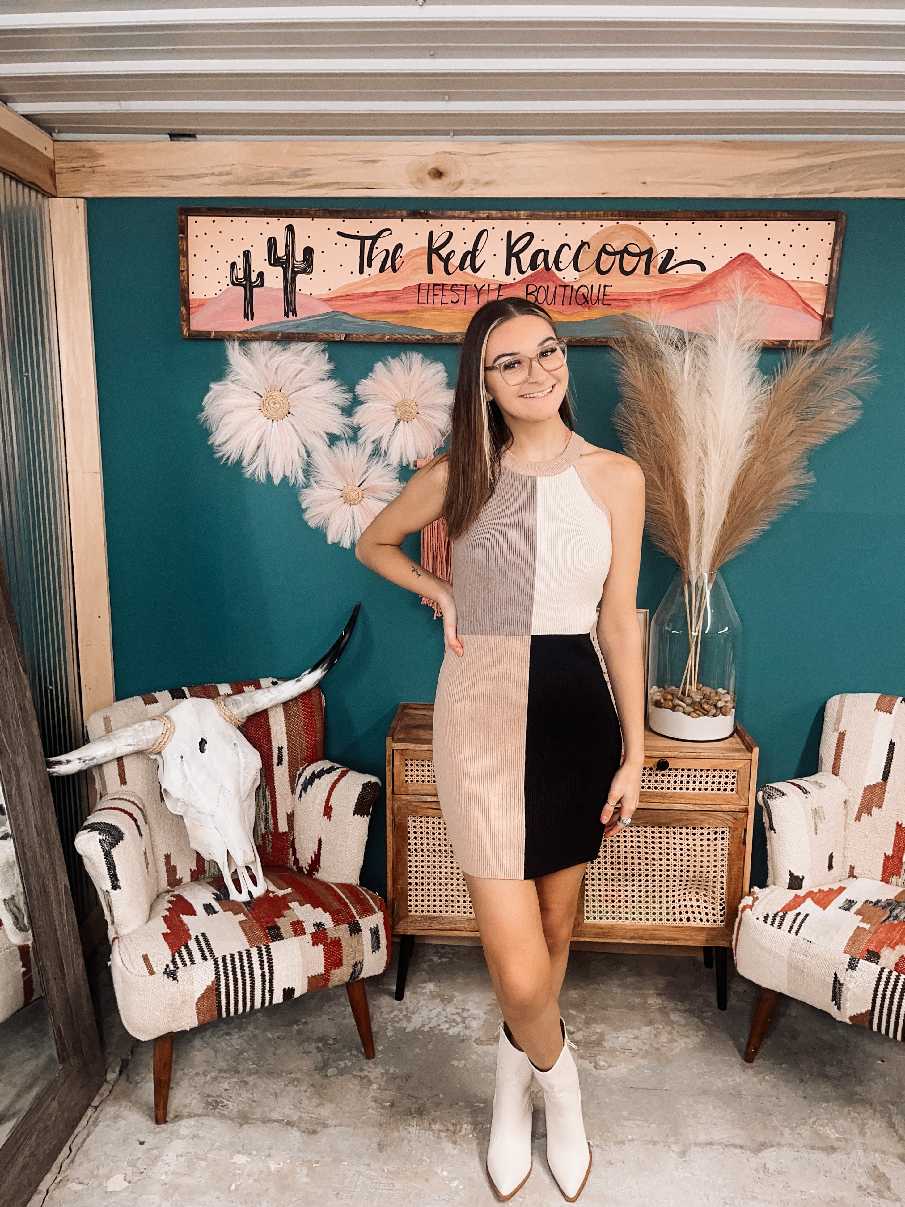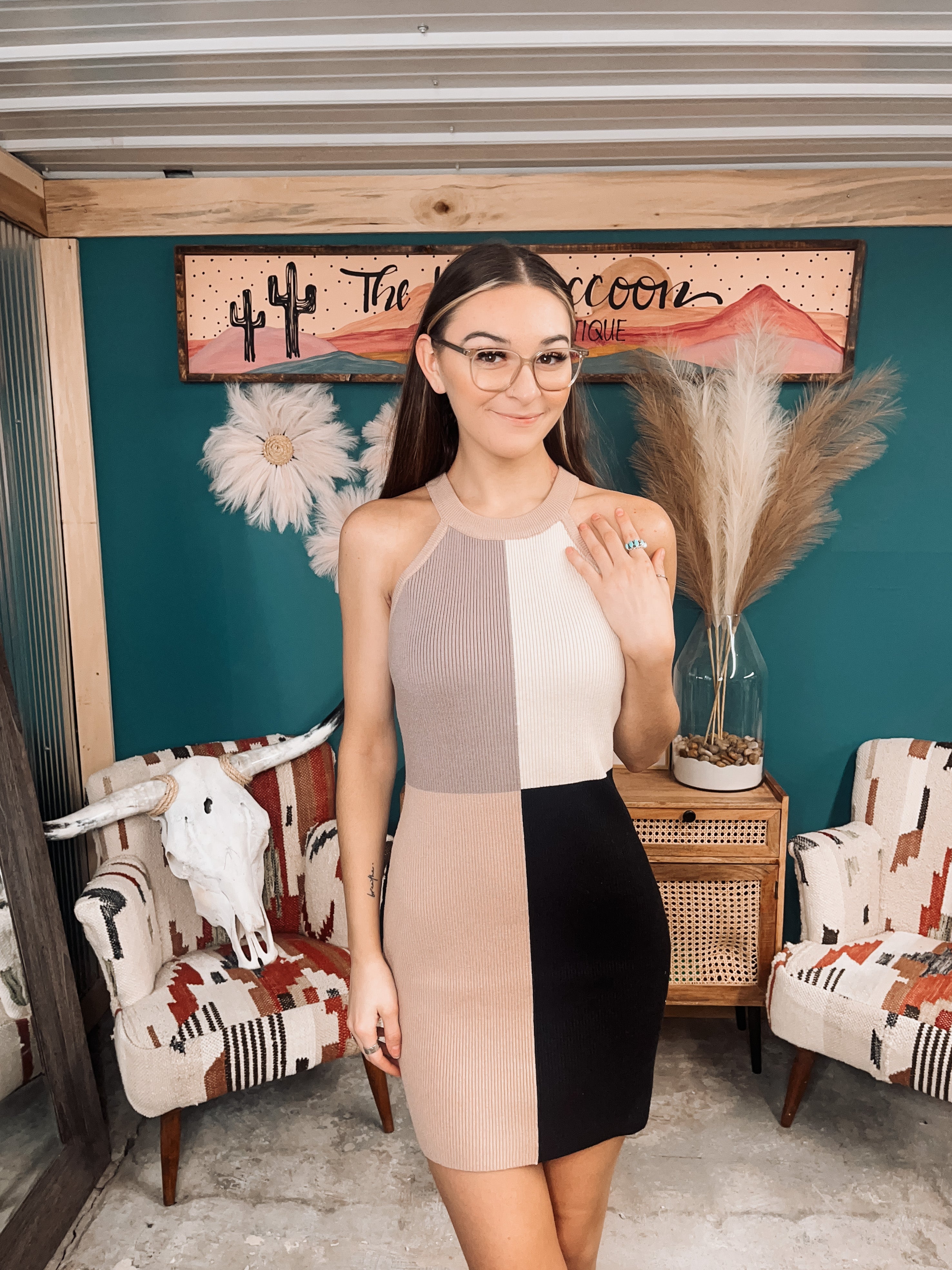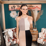 Mocha + Black Block Mix Ribbed Dress