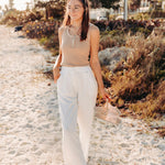 Off White Lined Elastic Back Slacks