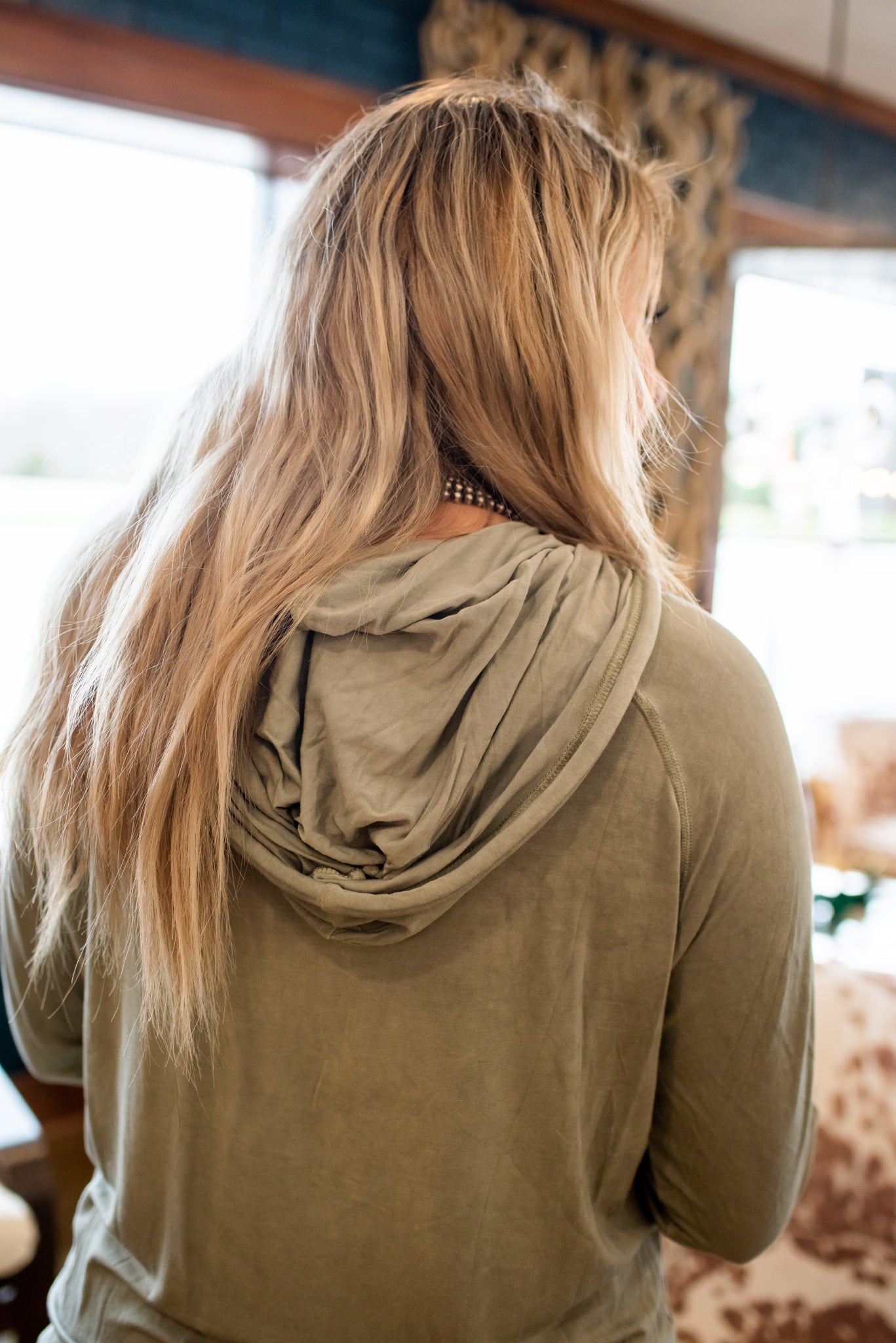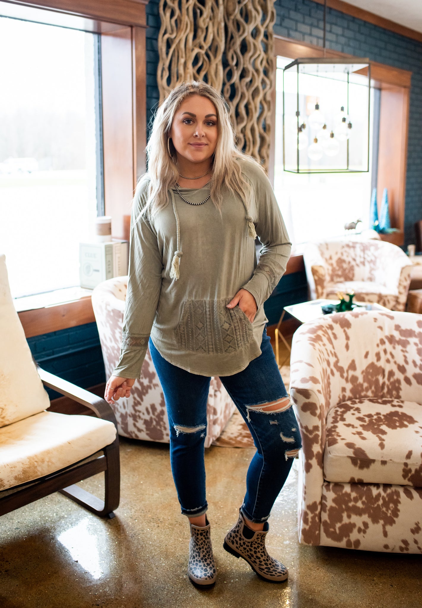 Olive Crochet Pocket Hoodie