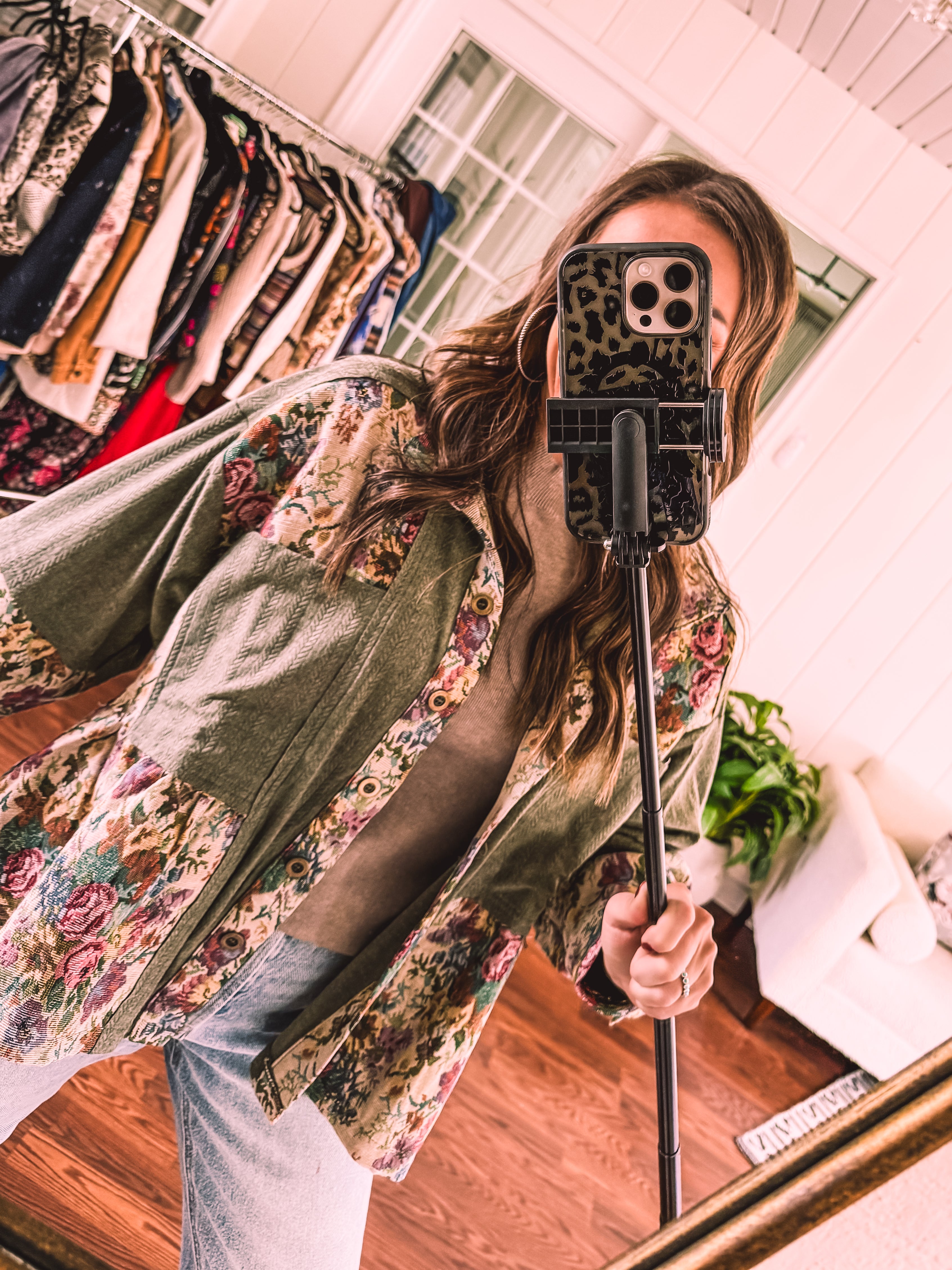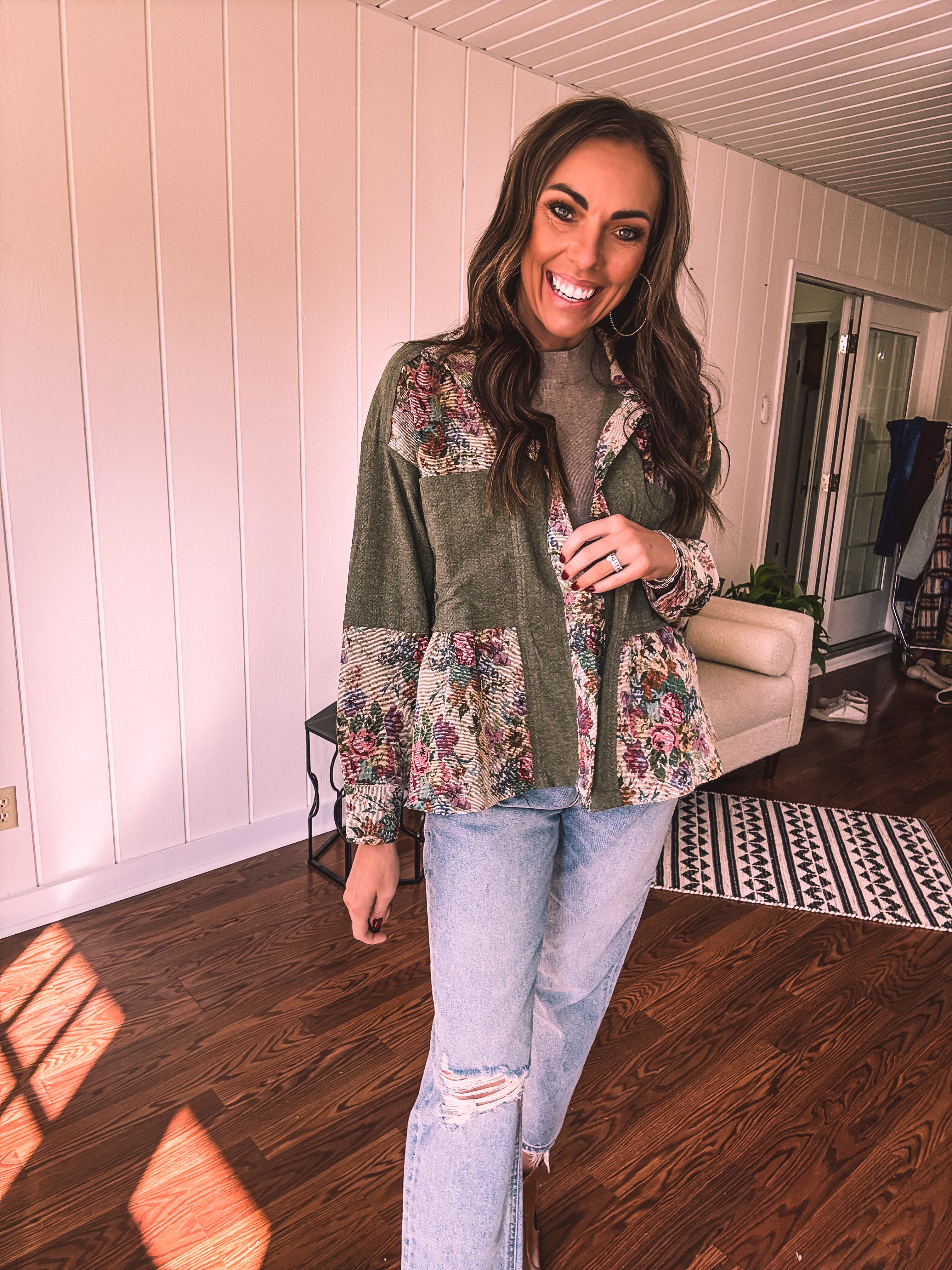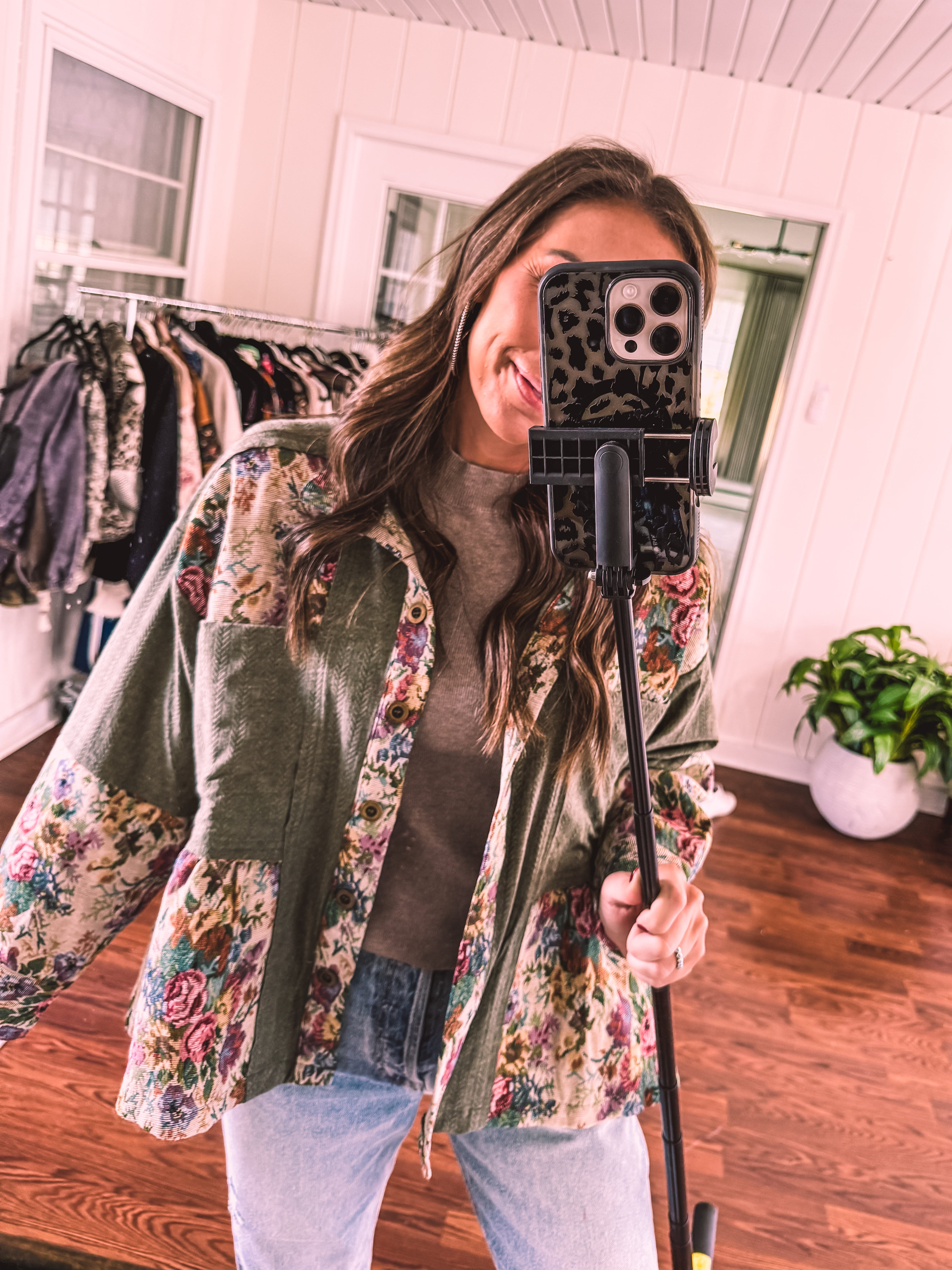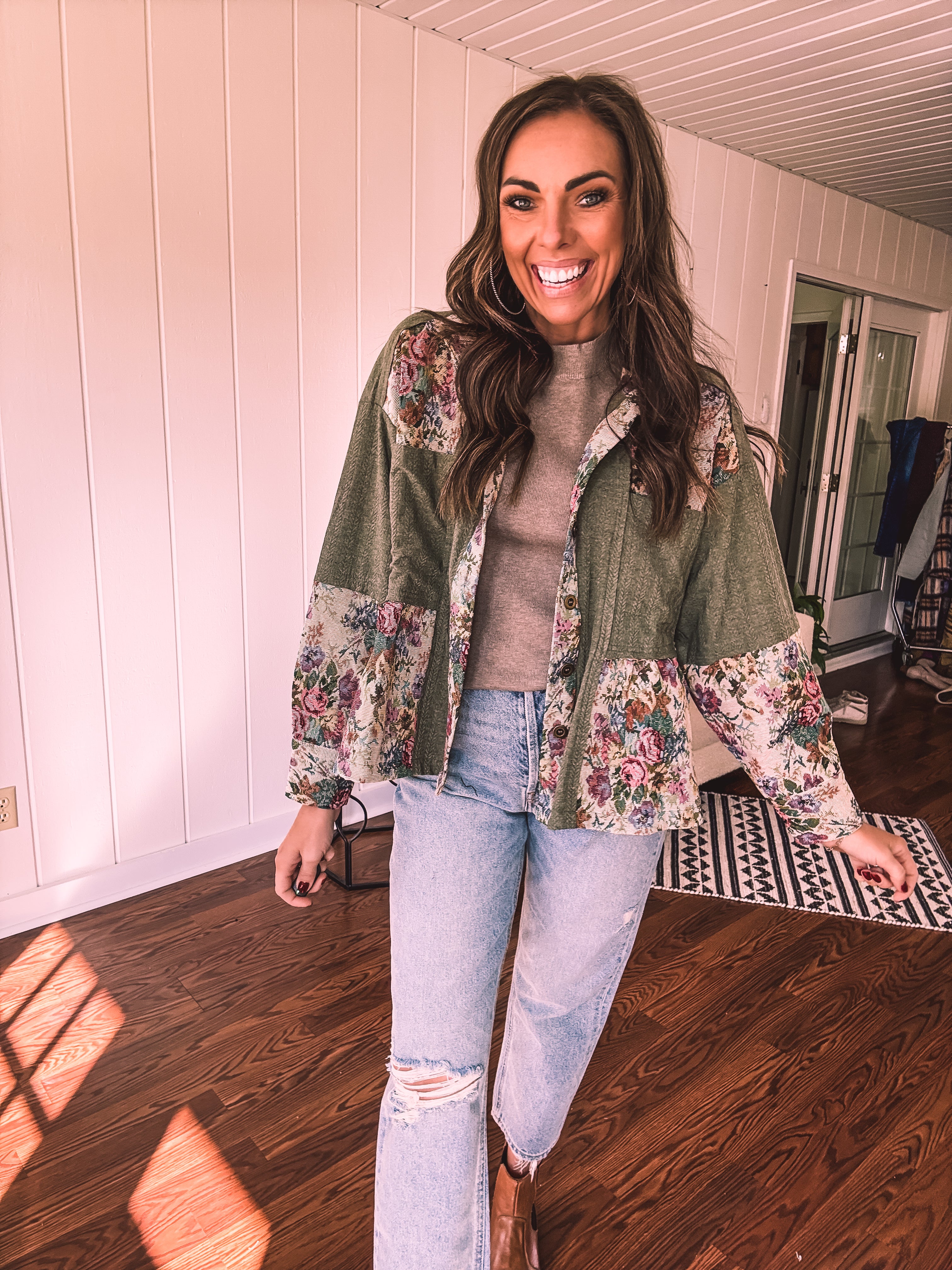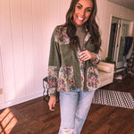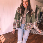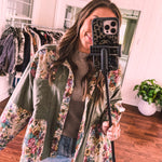 Step into effortless style with this olive beauty that blends rich texture and eye-catching floral jacquard in one statement piece. Metal button details line the front while a playful pleated hem adds movement and dimension. Perfect for channeling that free-spirited, unapologetically fabulous energy—this jacket proves you can be soft and fierce all at once.