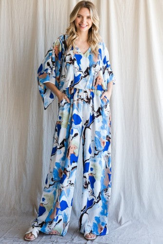Royal Geode Swirl V Neck Jumpsuit