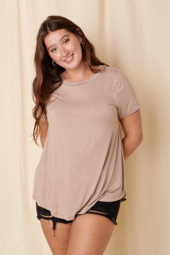 Taupe Scoop Neck Round Hem Bamboo Tee