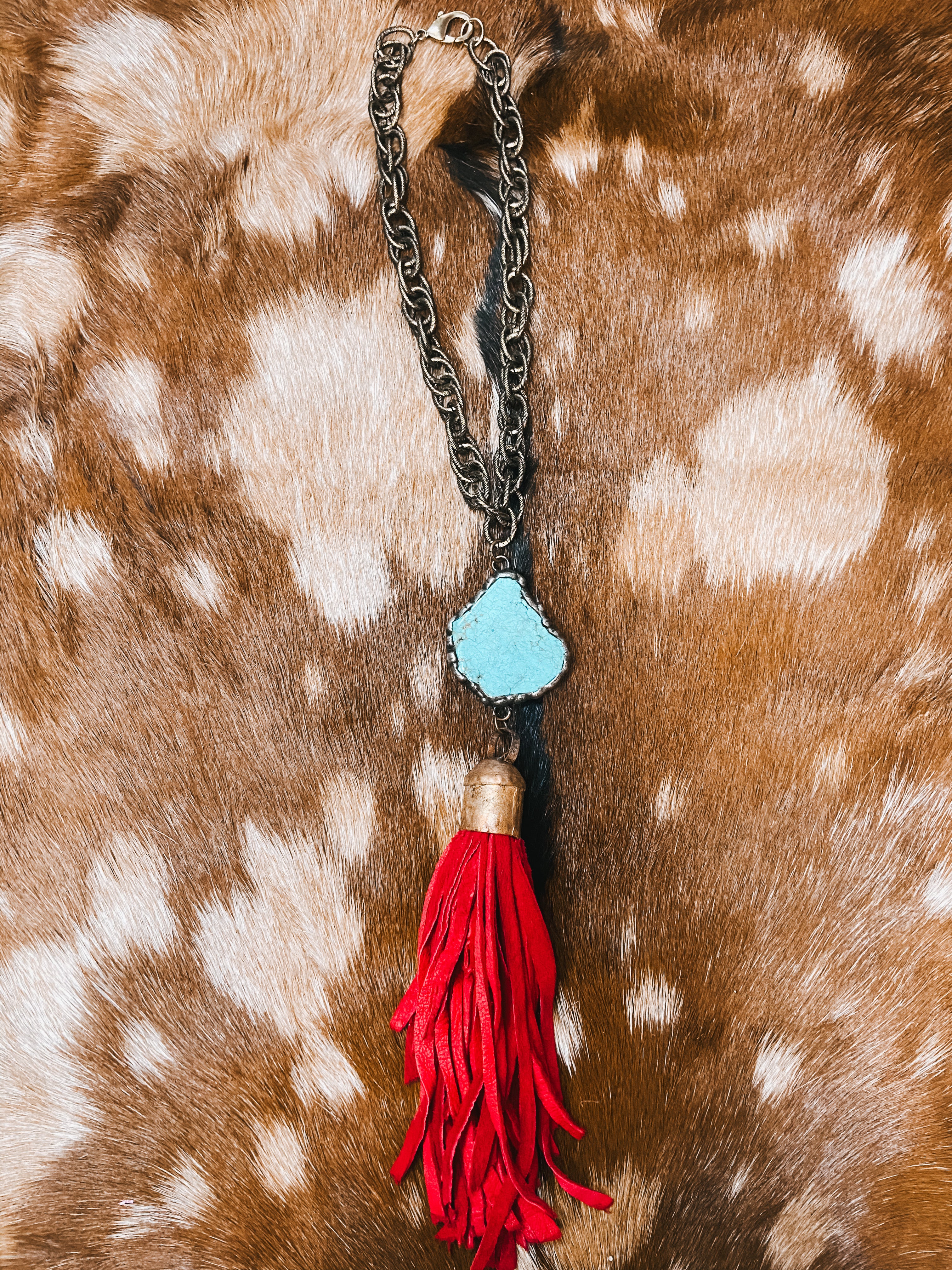 Turq Agate + Tassel on Chain Necklace