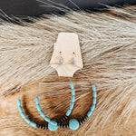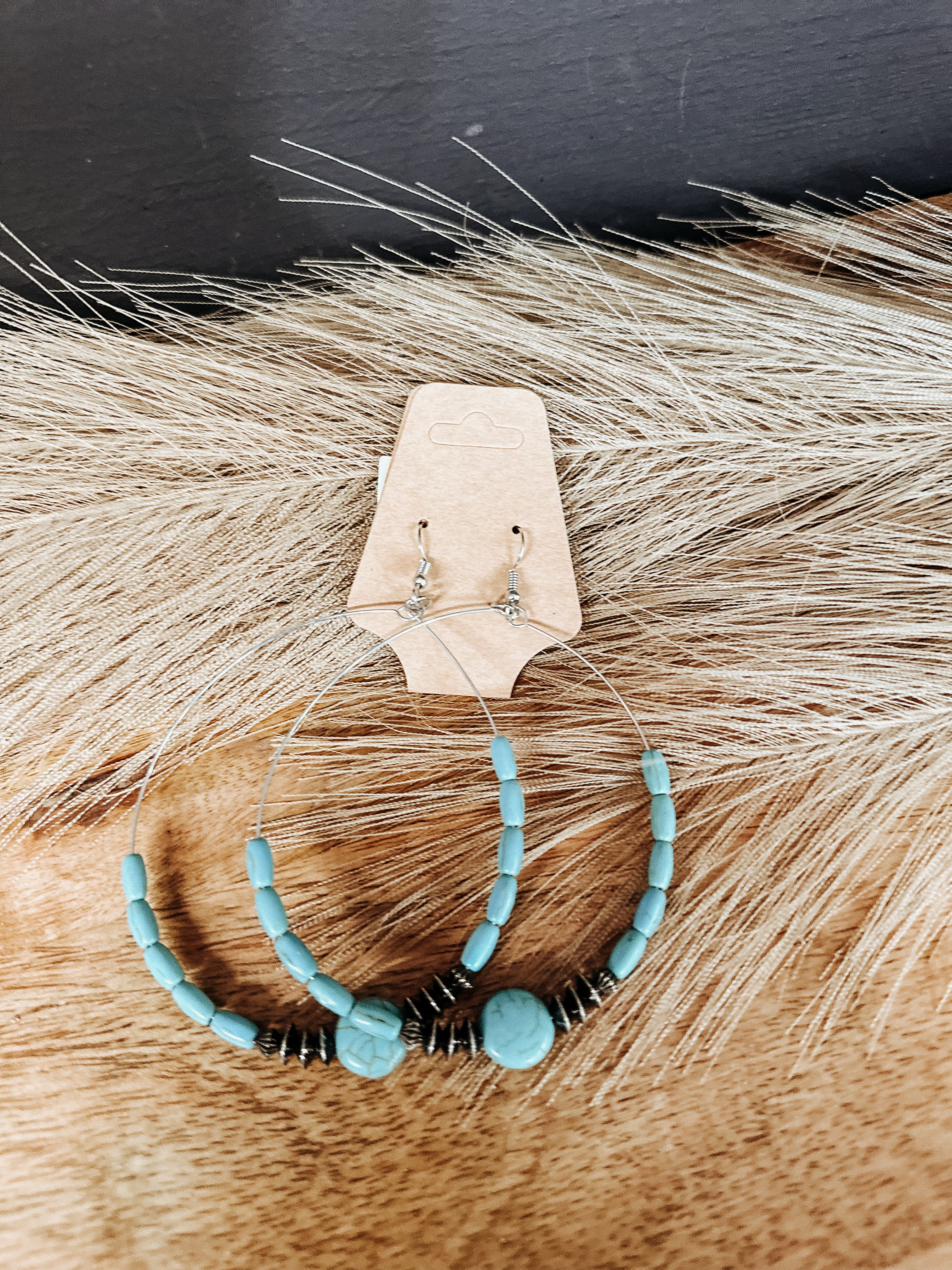 If you love the look of sterling silver and turquoise, we have the perfect affordable option for you! These extra large circle drop earrings feature faux turquoise beads combined with faux Navajo Pearl cylinders to create a stunning option to flatter any 'fit!