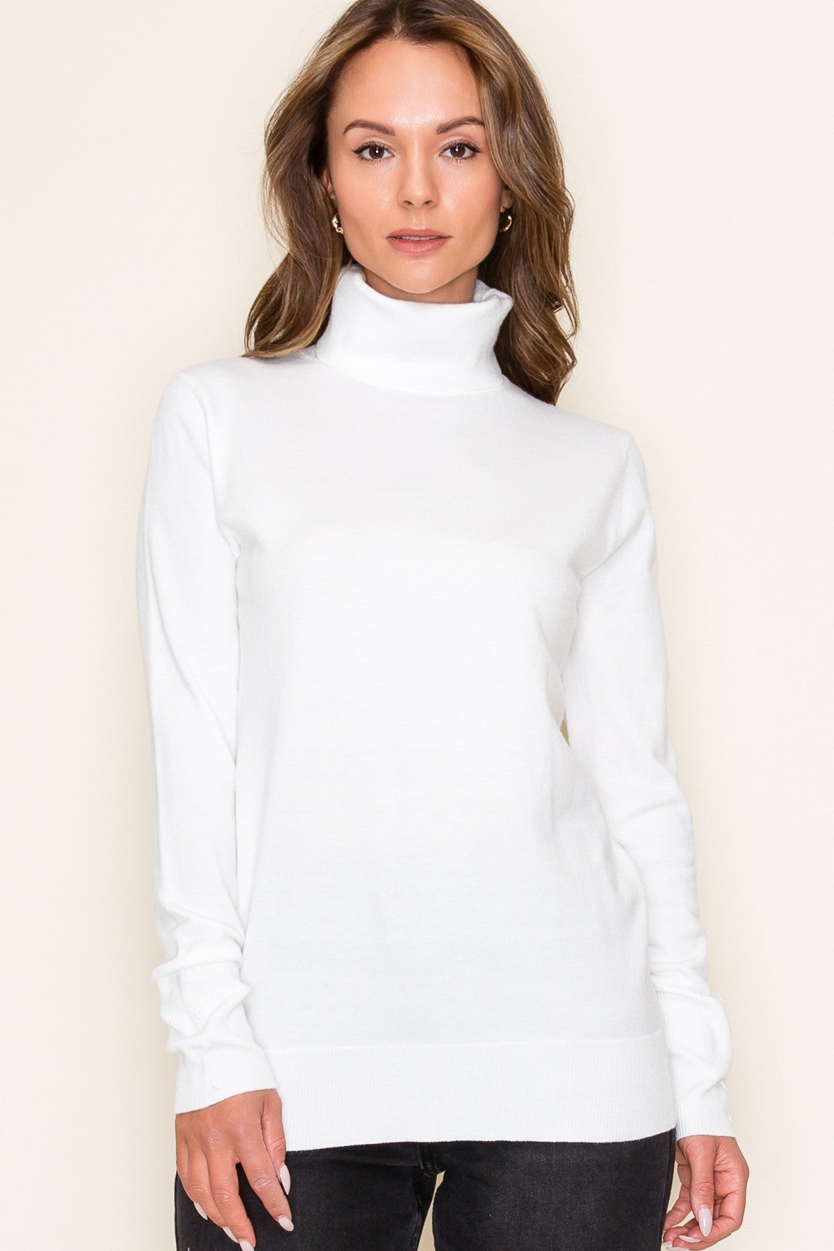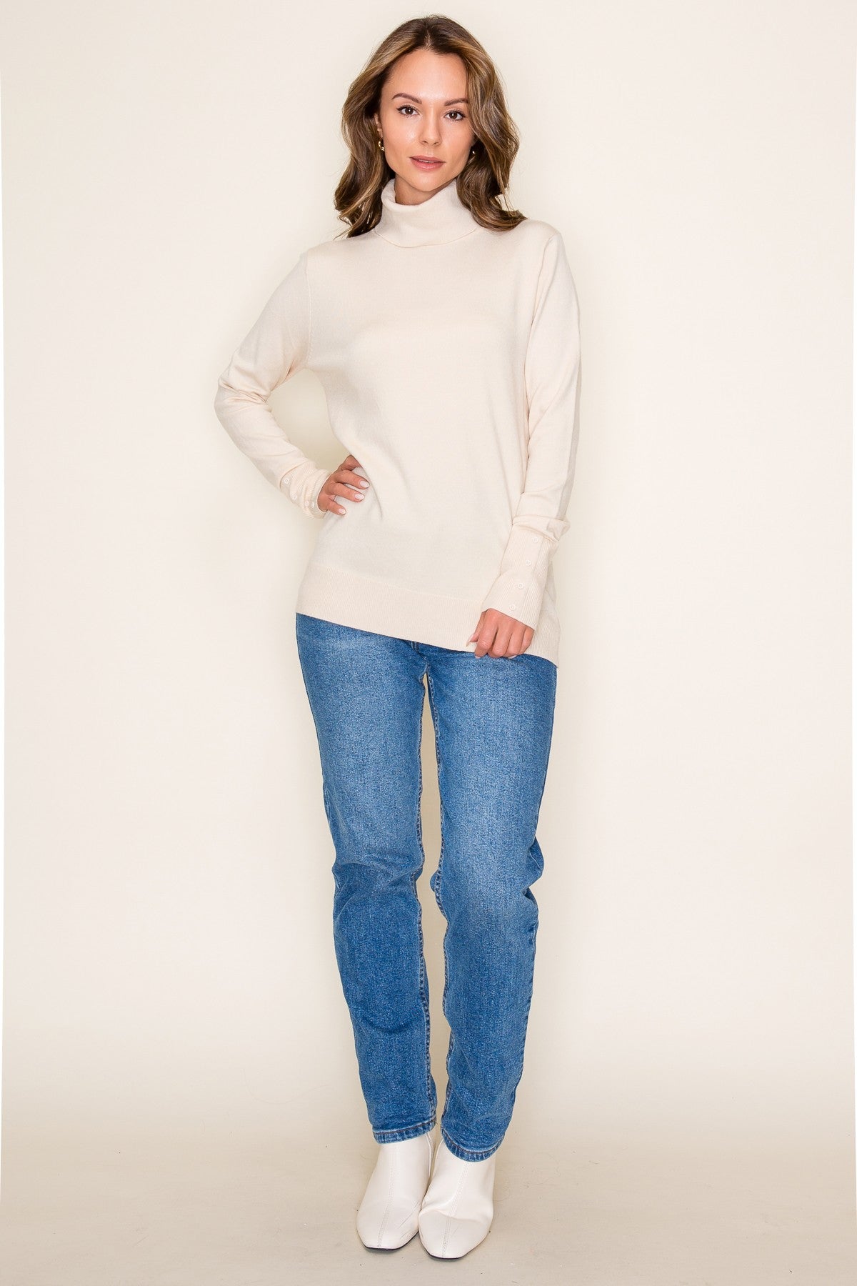 Turtleneck Long Sleeve Button Cuff Detail Sweater