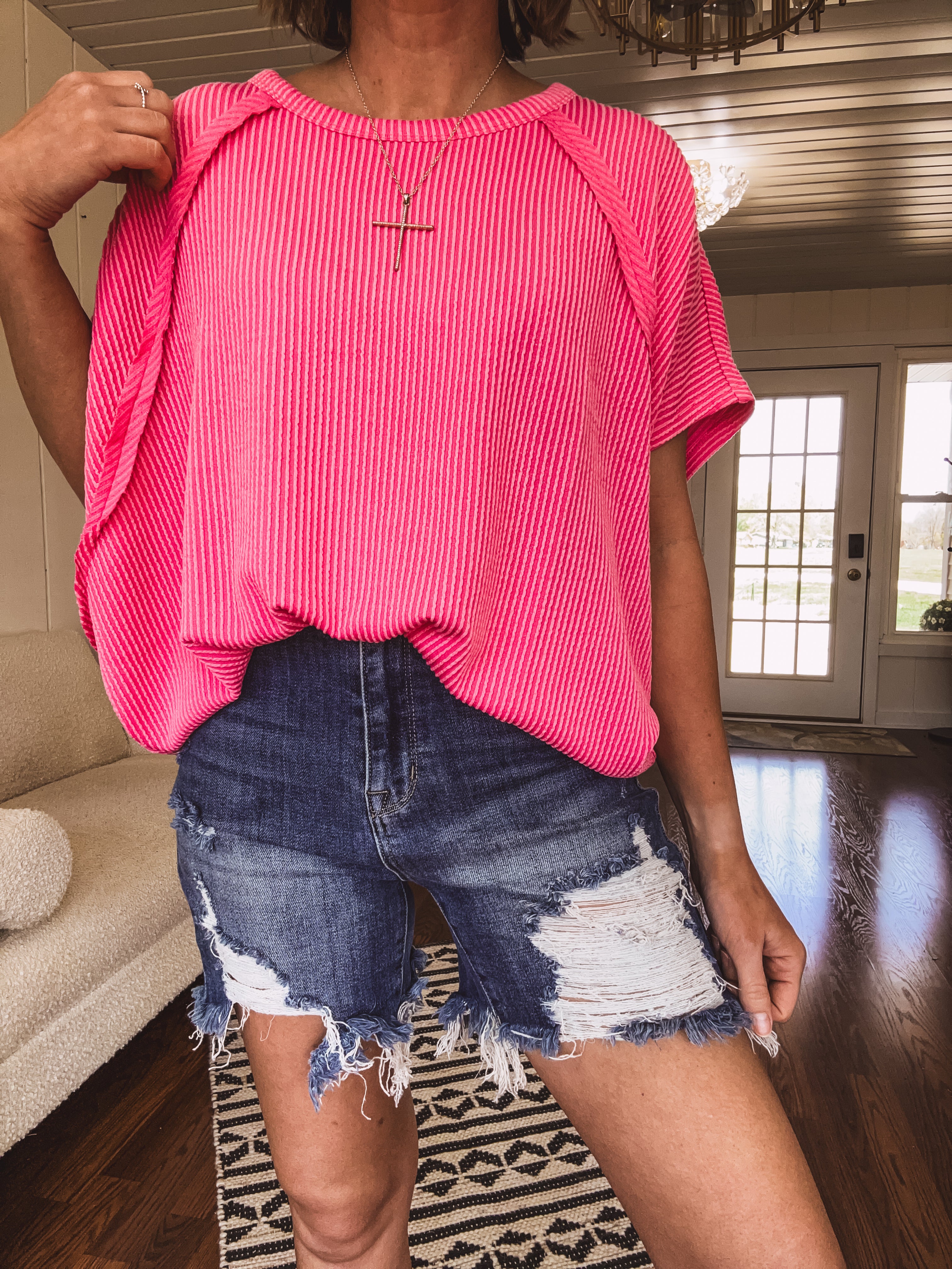Unleash your inner fashionista with this Urban Rib Raw Seam Easy Pullover! The Urban Rib texture, exposed seams, dolman-like cut and soft fabric provide a relaxed, flowy fit that's perfect for any casual outfit and flattering on any figure. Not only is this top comfortable, but it comes in a variety of colors so you can mix and match to your heart's content. And with endless possibilities for styling, this top is a must-have for any fashion-forward gal!