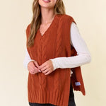 V Neck Drop Shoulder Wide Cable Sweater Vest