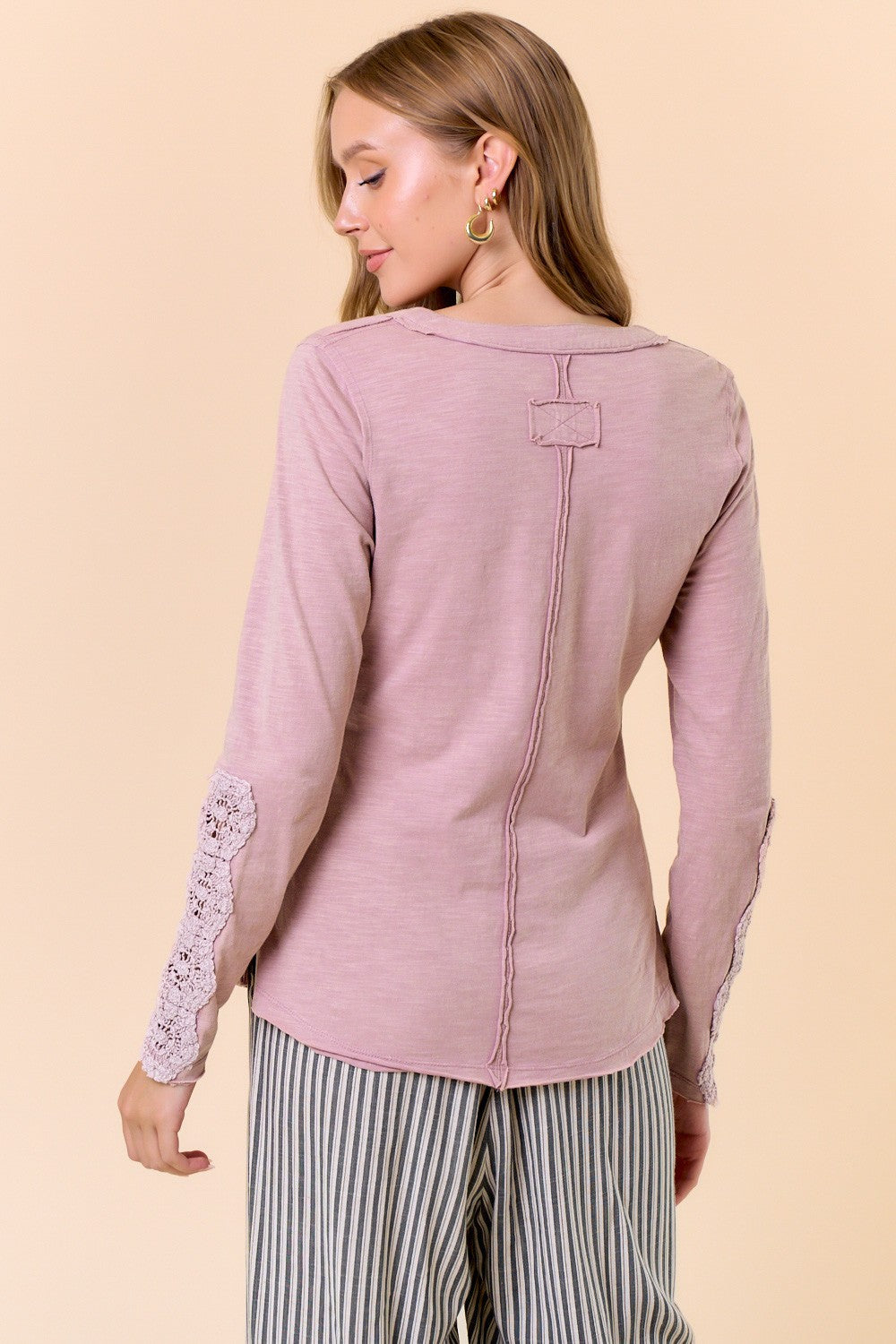 The ideal transition piece to take you from spring to summer to fall and back again. Made of a butter soft, breathable cotton and featuring functional metal buttons on the front, an exposed seam detail down the back and delicate crochet detail below the elbows, this top is versatile enough to wear alone or layer with your favorite jacket, shacket or blazer. You're going to want to grab each color!
