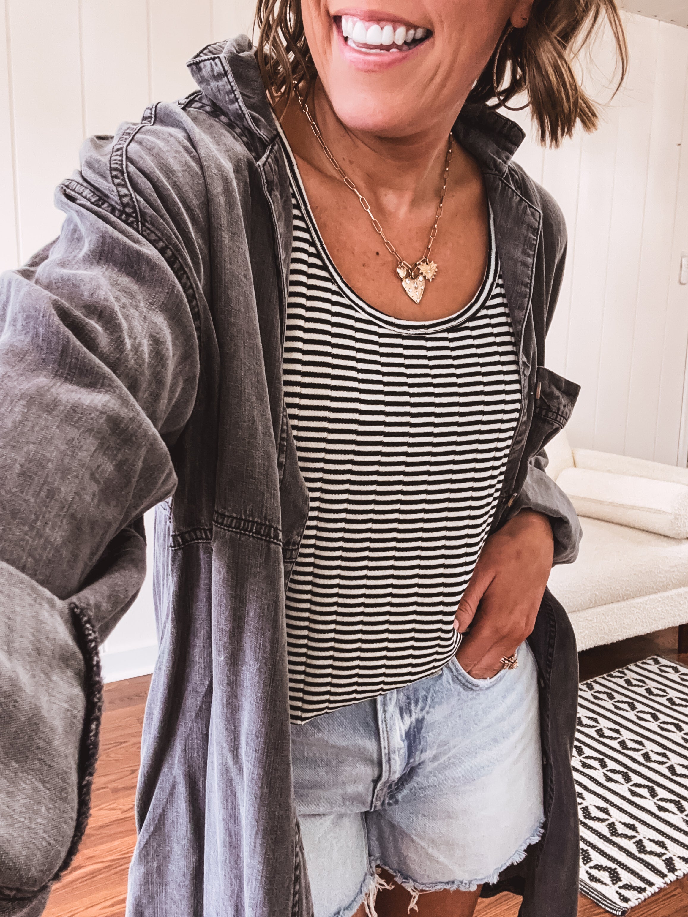 Fall in love with this versatile shirt dress, perfect for spring and summer and even transitioning into fall! Its button down front, collar, oversized pocket, and functional side pockets make it a must-have for any wardrobe. Lightweight and breathable, you'll want to wear it all season long!