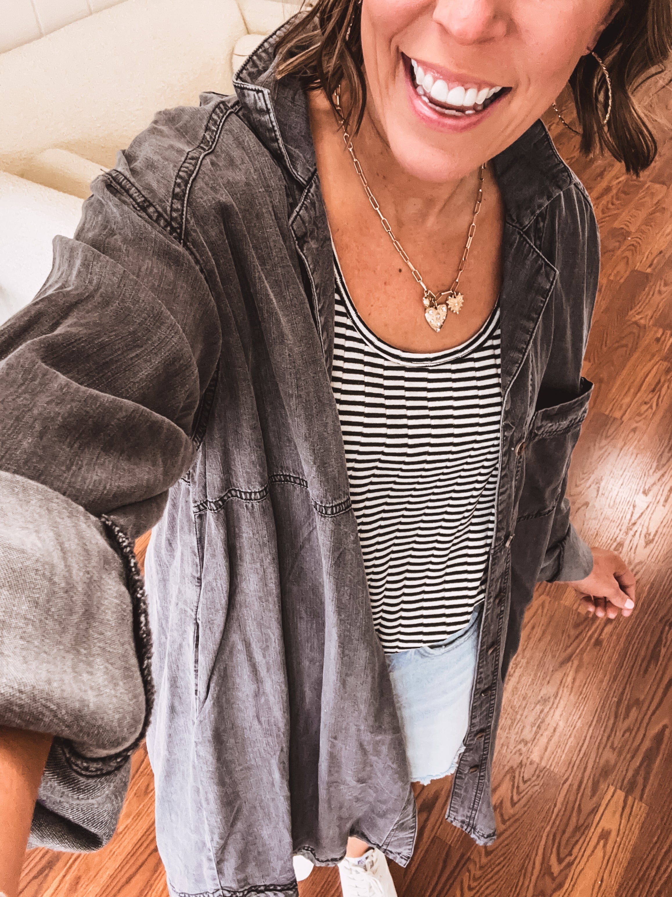 Washed Black Denim Button Down Dress