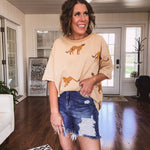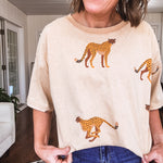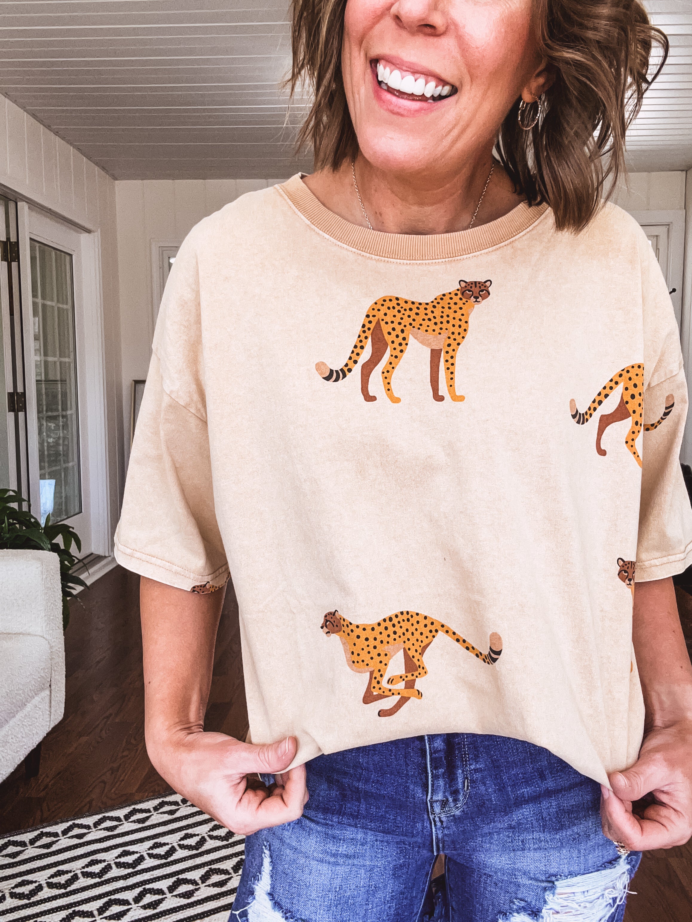 There is nothing softer than 100% cotton and there is nothing cooler than cheetah. Put them together and you get the Washed Camel Cheetah Easy Tee! With a relaxed fit, it pairs easily with denim jeans or shorts for a causal look. Take it up a notch and some black dress slacks or shorts, a skirt or a blazer and WOW! Go for it!