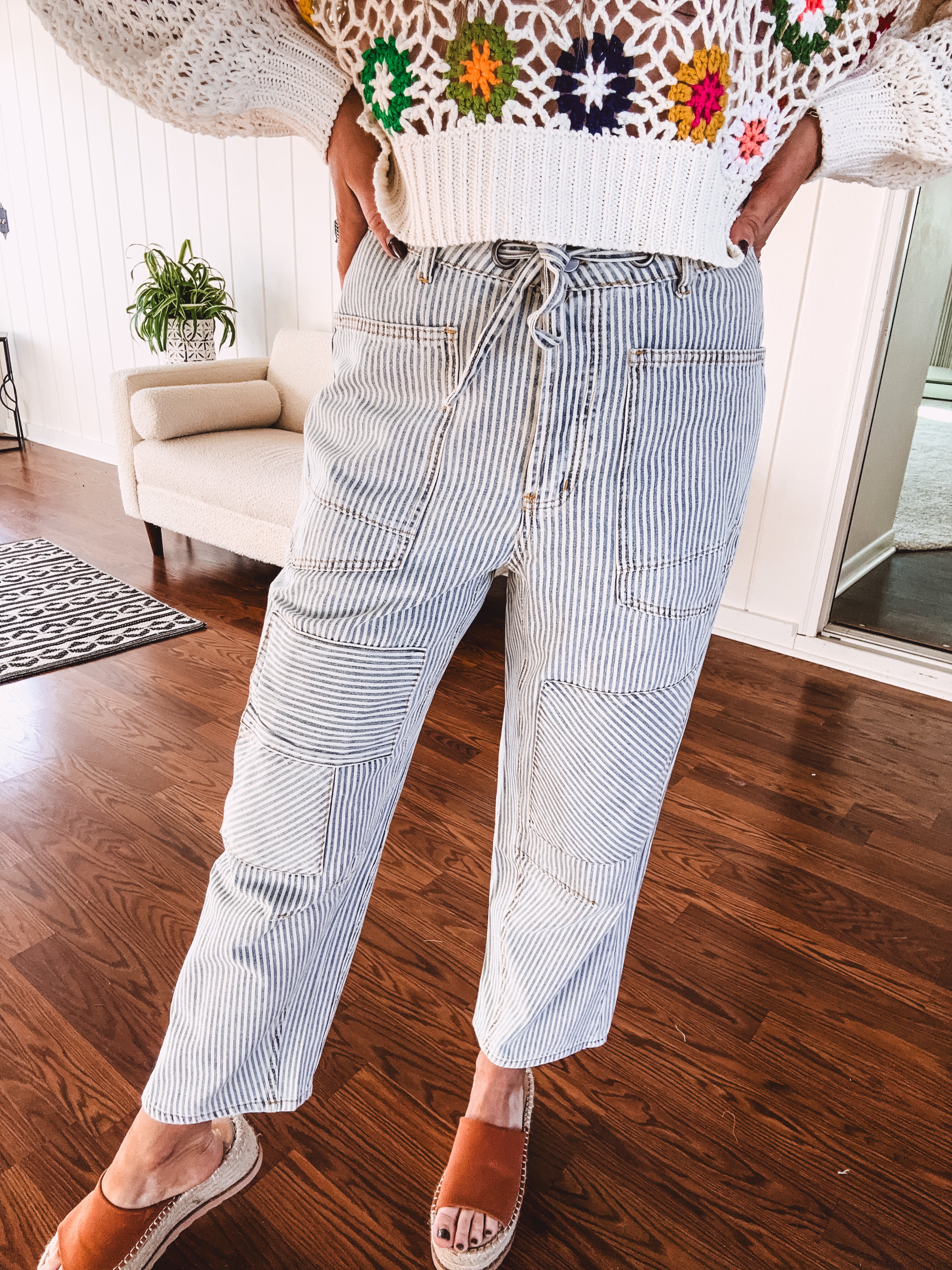 Get ready for summertime fun with these Washed Denim Stripe Twill Pants! Featuring a relaxed fit, oversized pockets, and a button fly, these lightweight pants have a seersucker-inspired design and an adjustable, drawstring waist. Perfect for living your best summer life!