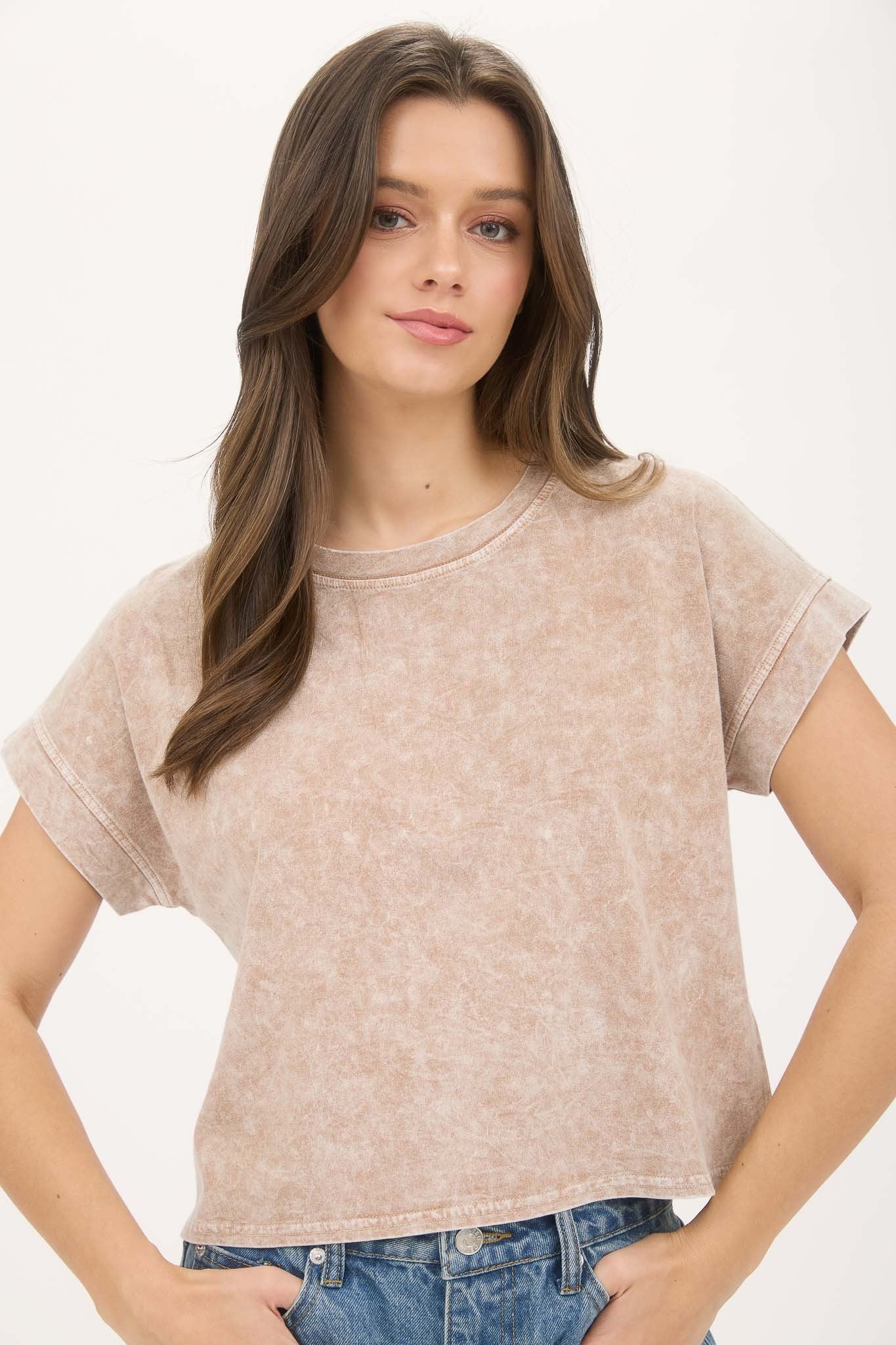 Washed Mom Crop Extended Shoulder Top