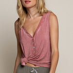 Dive into summer with this buttery-soft tank in a washed red brick color! It boasts a roomy V-neck, four charming abalone buttons, and a breezy fit that’s perfect for sunny days. Layer it up when the weather cools for a rich and trendy splash of color and comfy, breathable style all year long.
