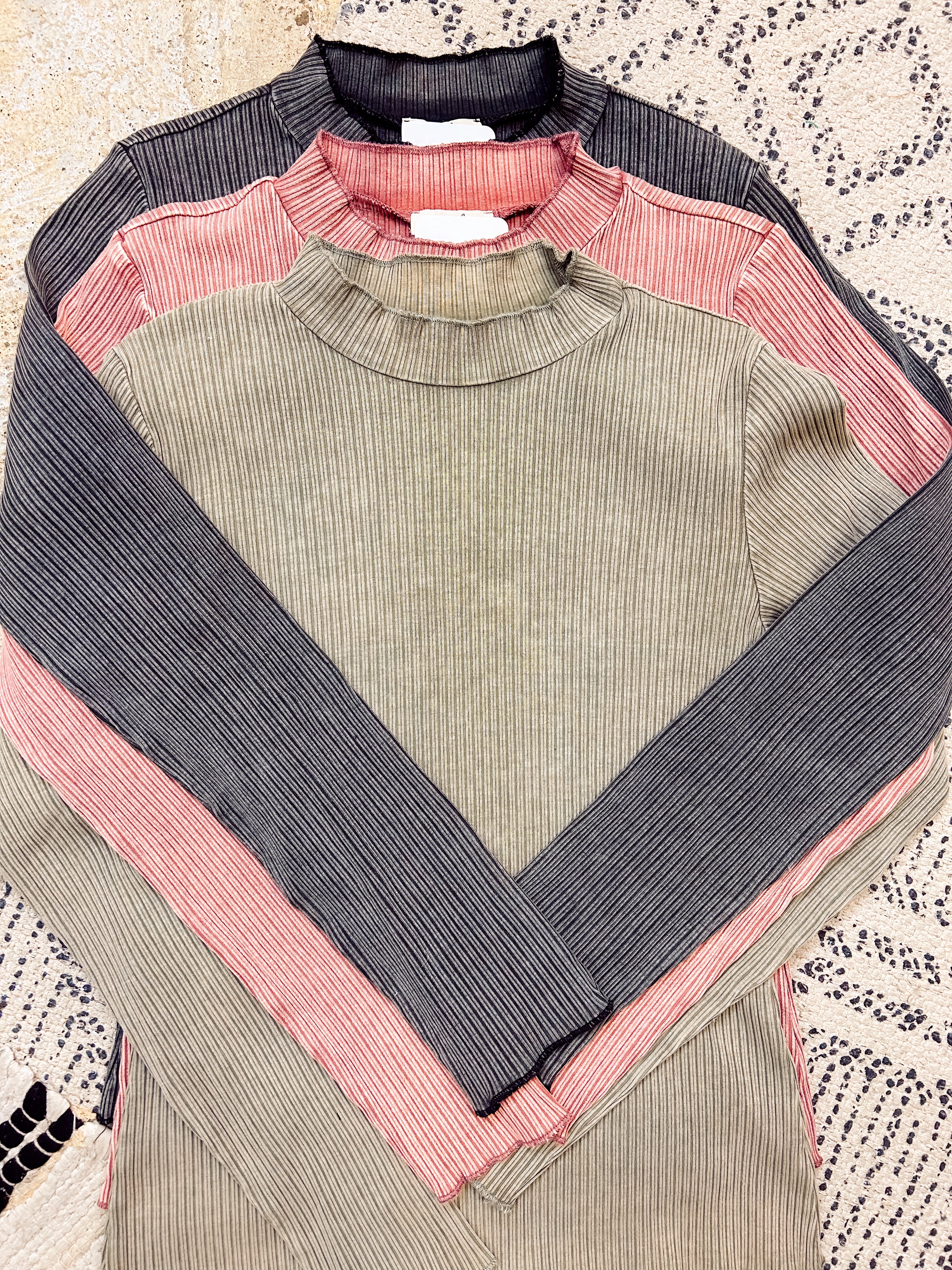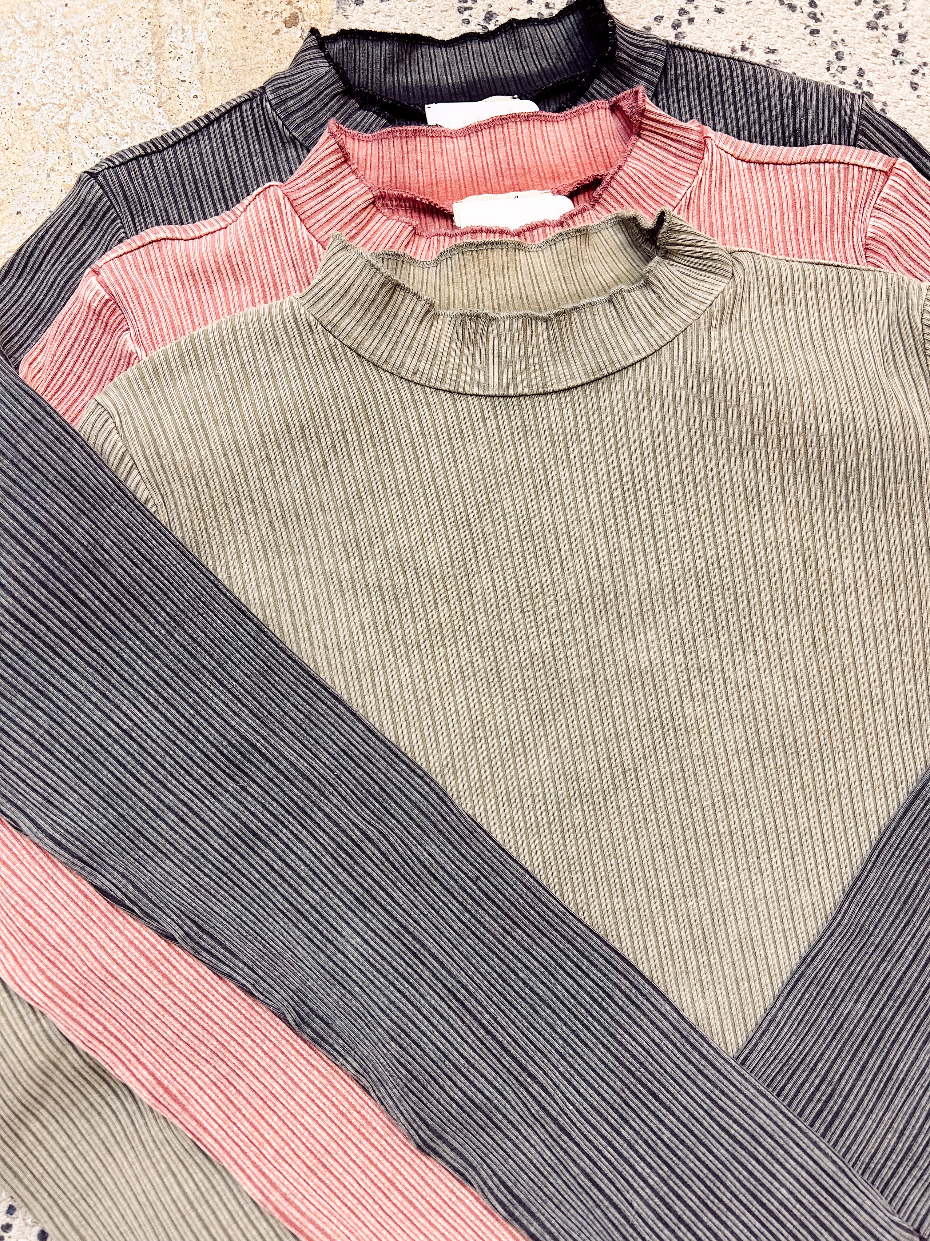 Enhance your wardrobe with our must-have Washed Rib Knit Fitted L/S! The unique mock neck and washed ribbed fabric add a muted yet edgy touch to any outfit. You can easily pair this with a shacket or blazer for a chic look, or wear it alone with jeans and boots for a trendy vibe. Elevate your style game with these versatile and fashionable options!