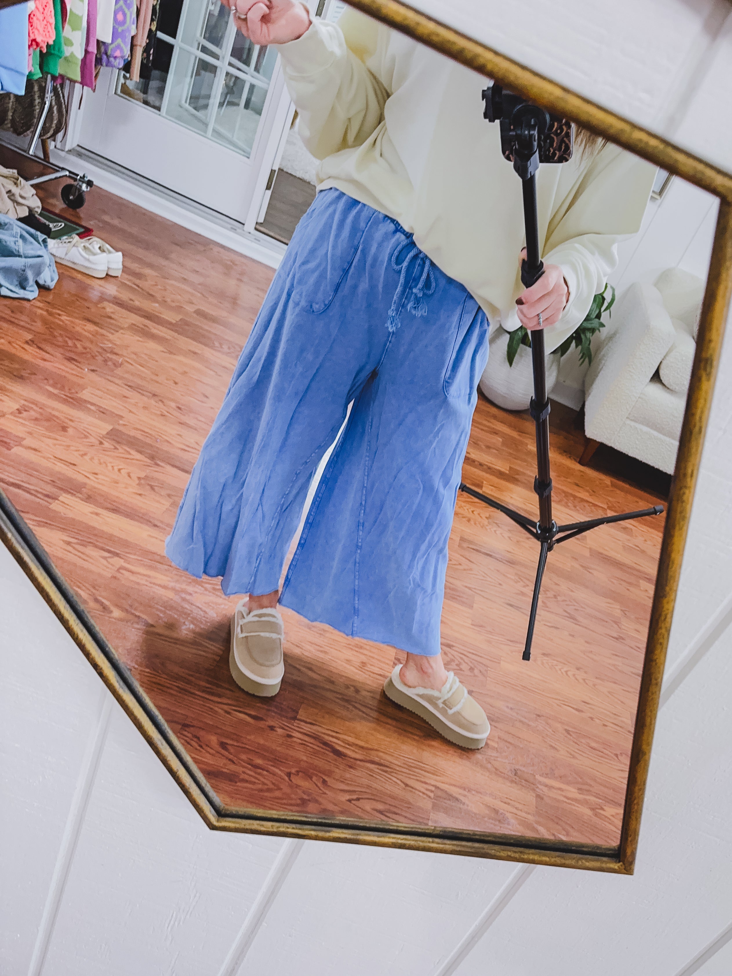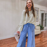 These Washed Terry Knit Wide Pants are a fan favorite. The wide leg design and adjustable draw string waist combined with the lightweight and breathable terry fabric makes them perfect to throw on and go in comfort and style all season long!