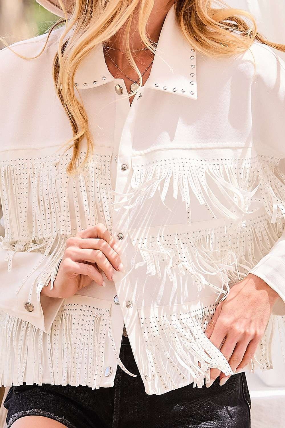 White Fringe Studded Jacket