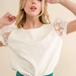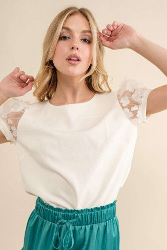 White Top with Fluffy Floral Sleeve