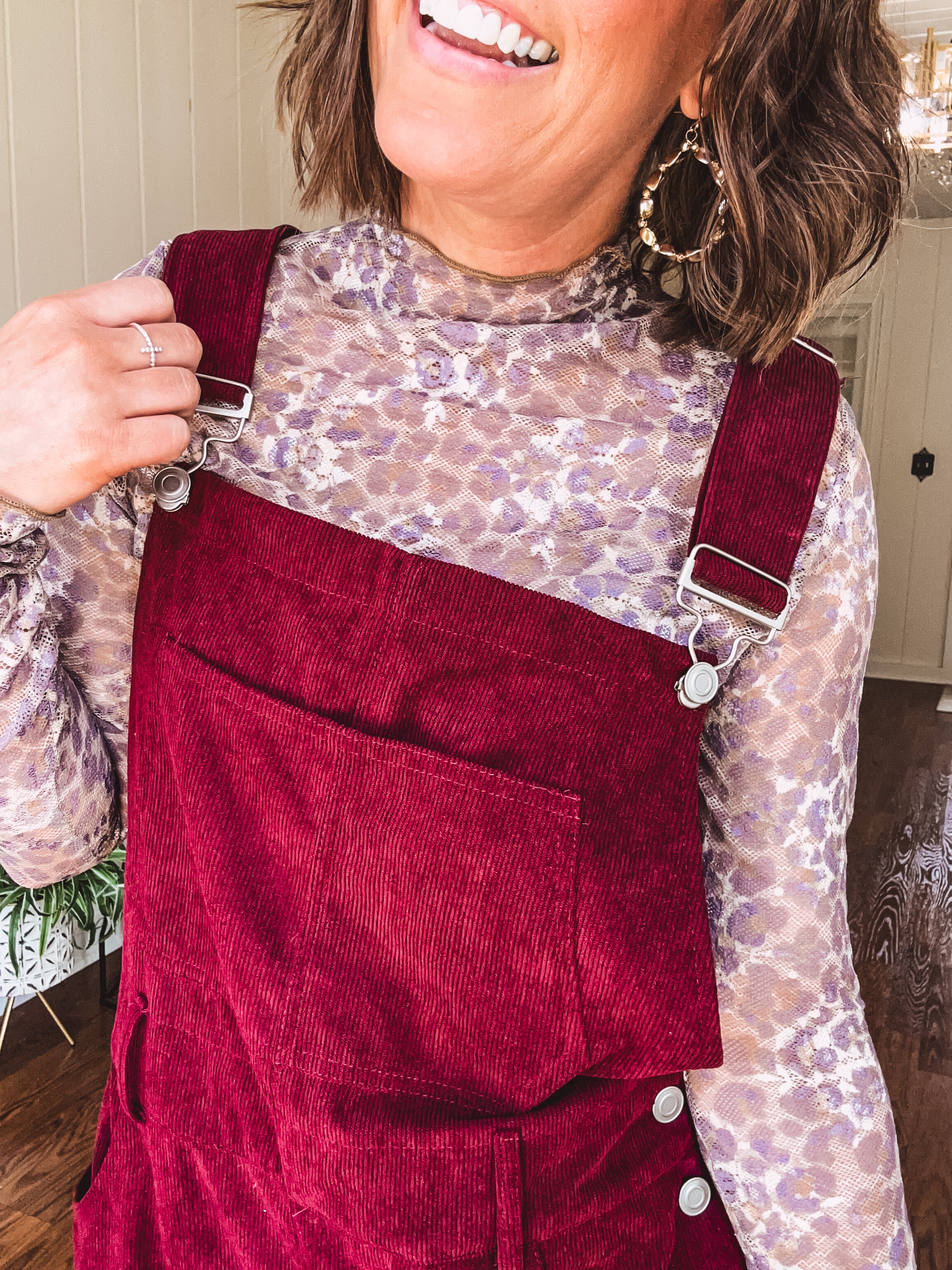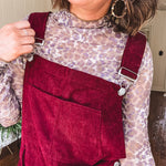 These overall shorts feature a lightweight, soft corduroy in a rich wine shade, complete with cuffed hems, metal buttons, and adjustable straps. A playful twist on the classic overall, they’re perfect for mixing and matching with everything from mesh tops and tanks to mock necks and cardigans. Endless outfit options, endless fun!