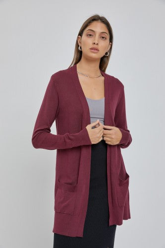 Wine Montecito Cardigan with Rib Hem & Pockets
