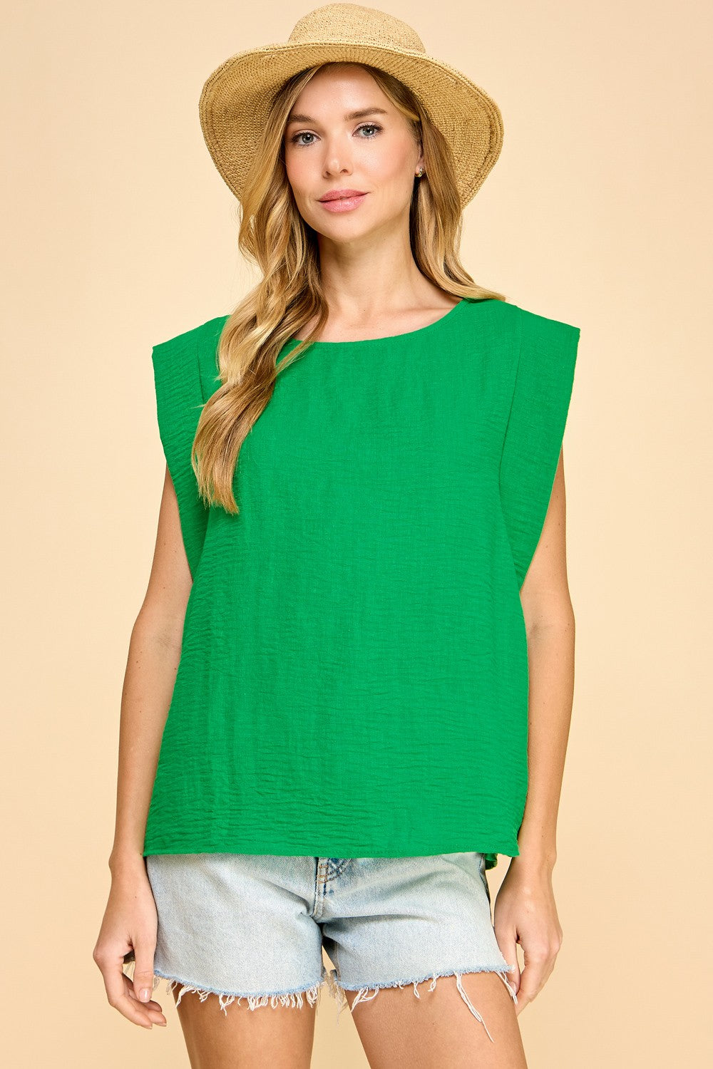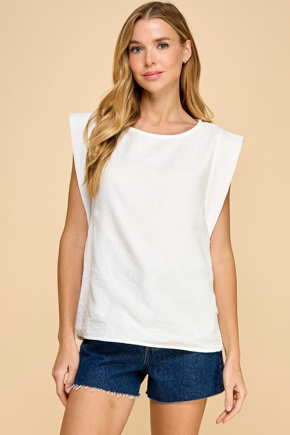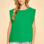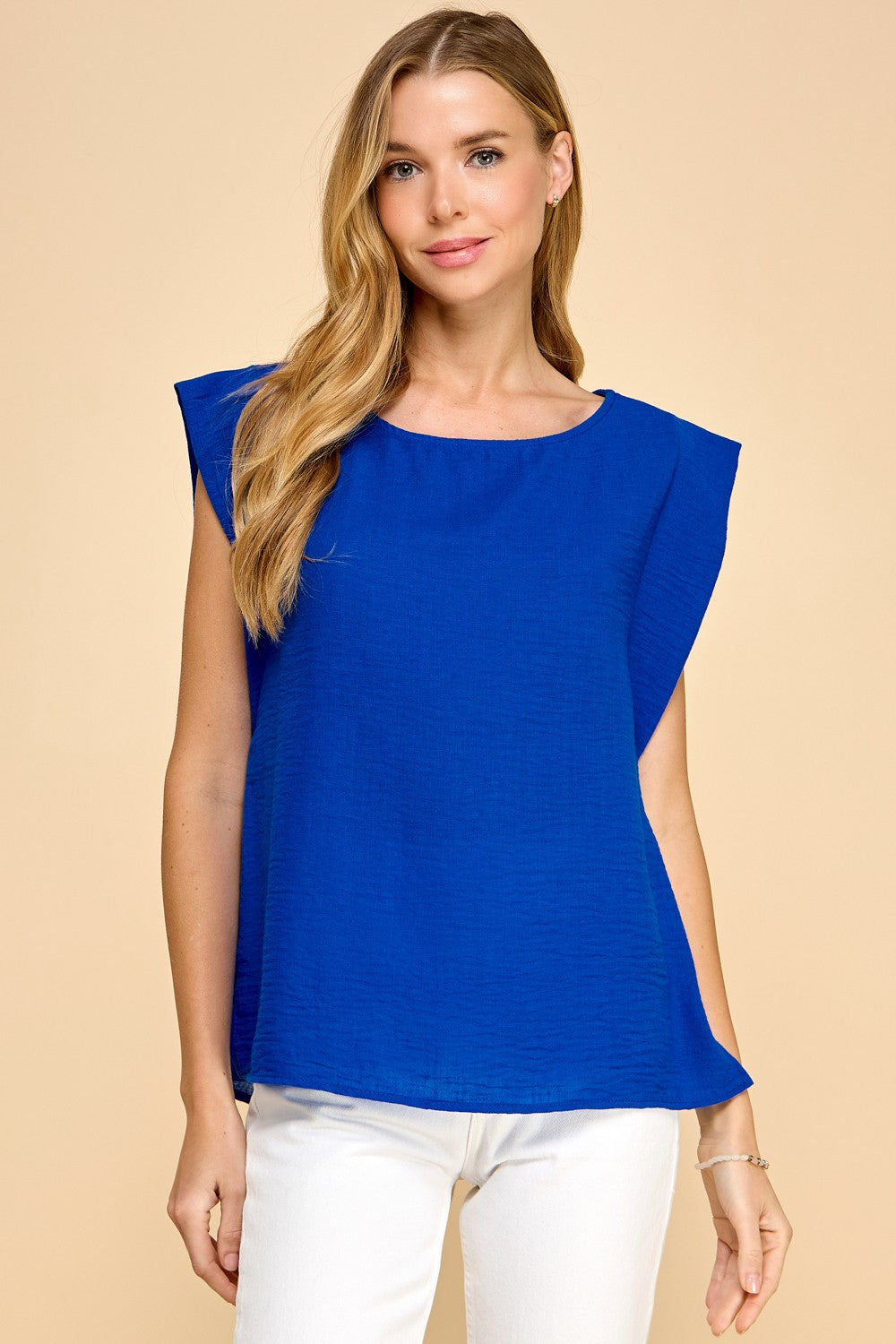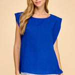 Woven Round Neck Cap Sleeve Top